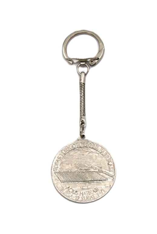 Murat 124 anahtarlık, Tofaş Türk Otomobil Fabrikası Açılış Hatırası Bursa - 12 Şubat 1971 yazılı, 3.5x3.5 cm