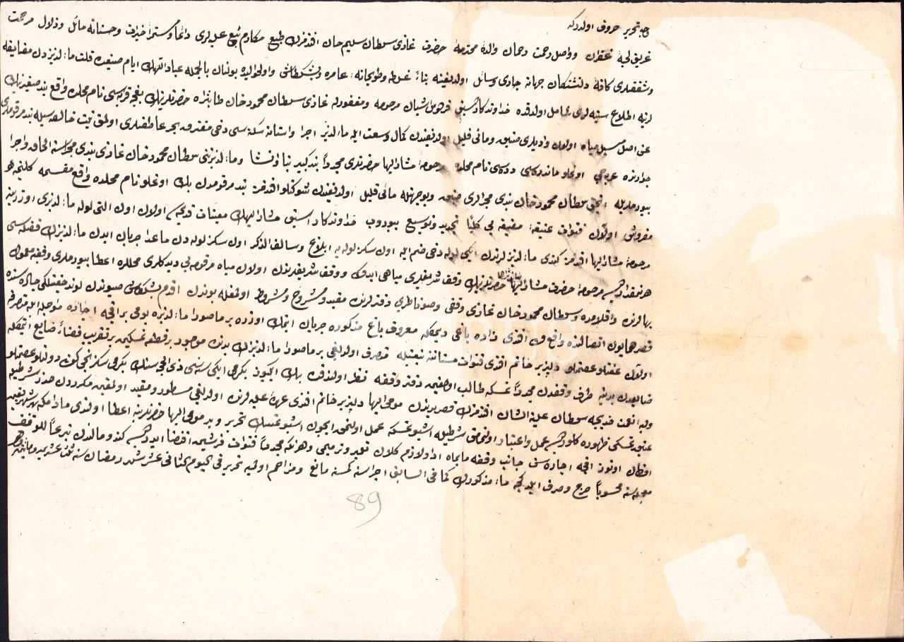 Sultan II. Mahmut vakfı olan Bahçeköy bendlerinin suları İstanbul'a yeterli gelmediğinden Hatice Sultan'ın vakfı olan suların da Beşiktaş ve civarına getirilip vakıf edildiğine dair 1223 senesi Osmanlıca vakıf kaydı, 34x25 cm