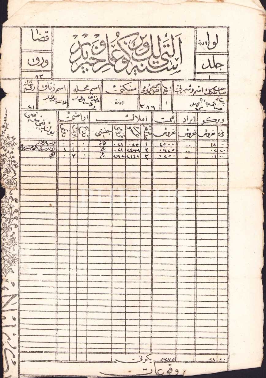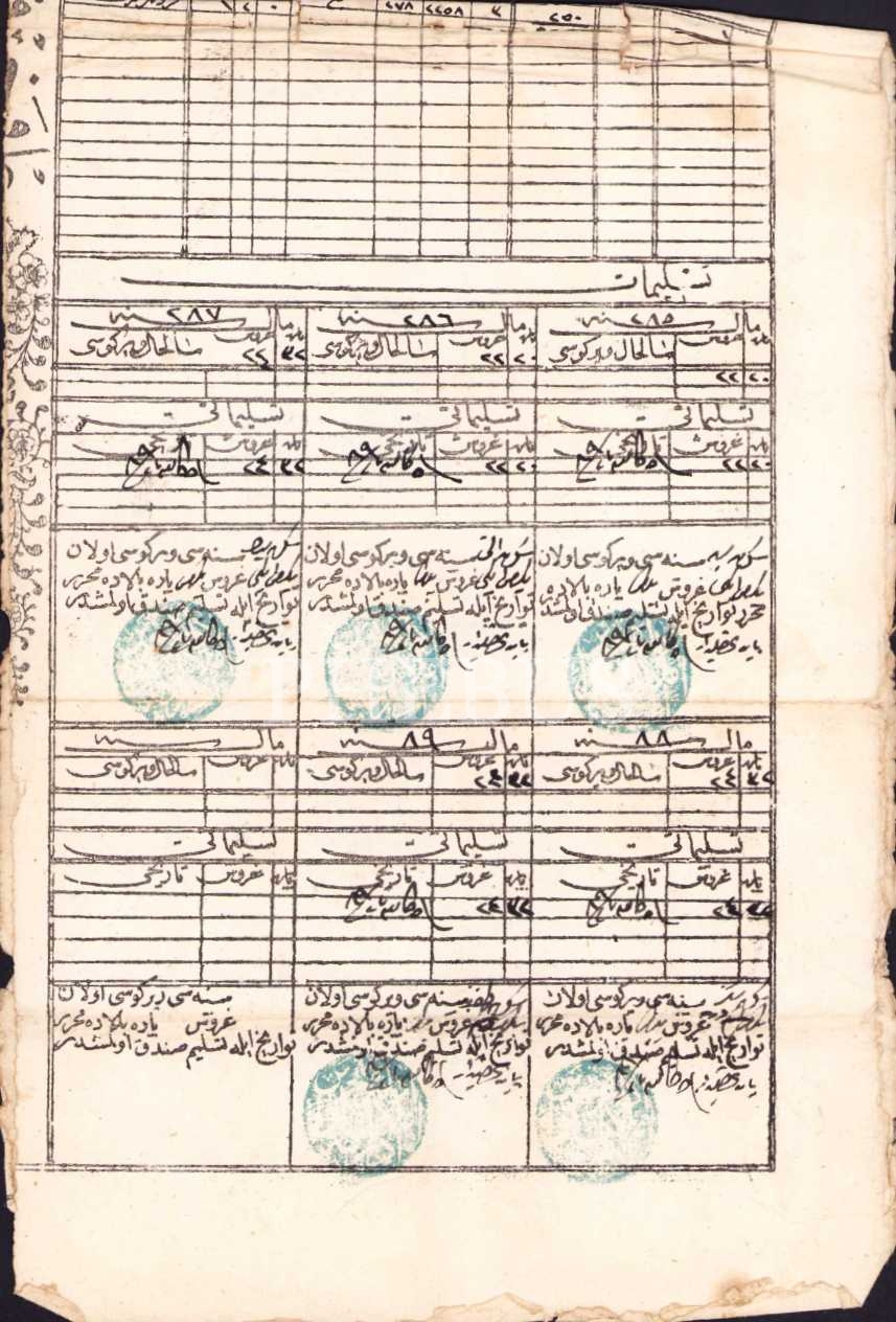 Osmanlıca Altı senelik vergi ilmühaberi, Edirne, 1289, 16x46 cm