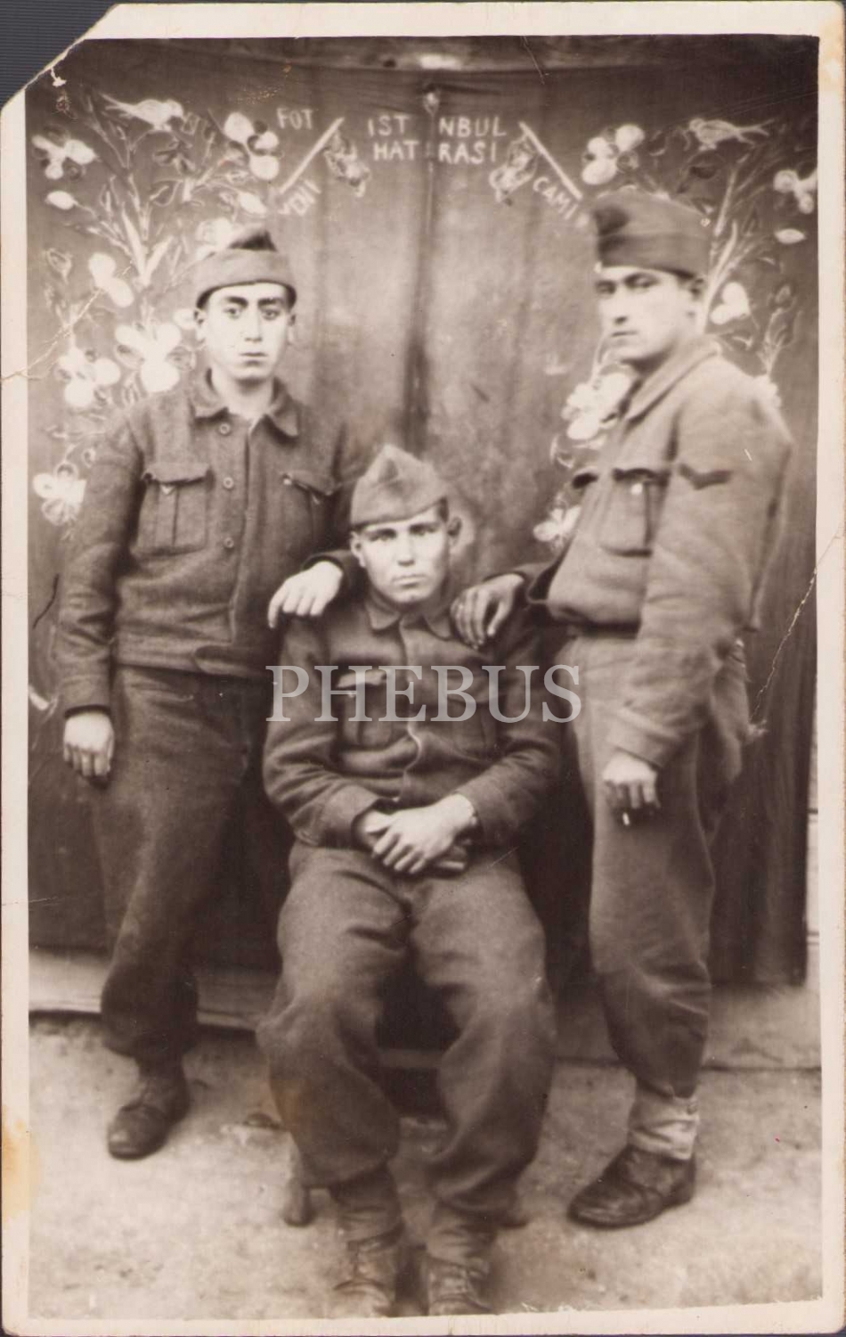 İstanbul Hatırası yazılı fon önünde askerlik hatırası, arkası yazılı, bir kenarı kopuk
