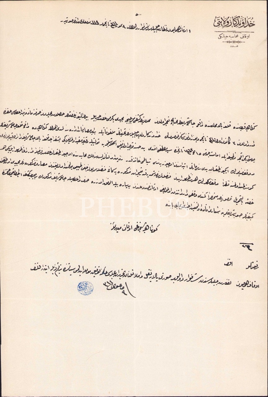 Osmanlıca Hüdavendigar Vilayeti antetli Kütahya kazasındaki caminin tamiratı ve caminin imamlığına atanan Seyyid Mustafa Efendi'nin kayıt işlemlerinin düzeltilerek maaşının ödenmesi hakkında 1311 tarihli evrak, 22x33 cm