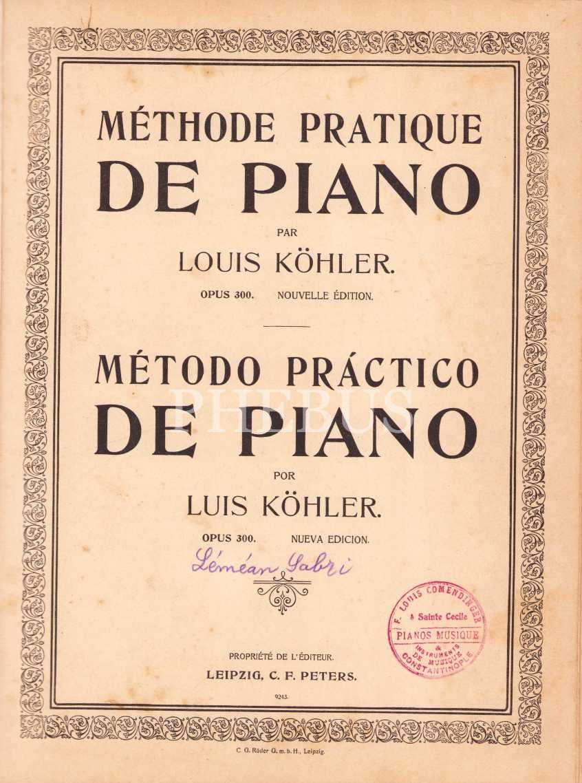 Almanca - Fransızca nota kitabı, Methode Pratique De Piano, Louis Köhler, Leipzig, kenarları haliyle, 177 sayfa, 22x30 cm