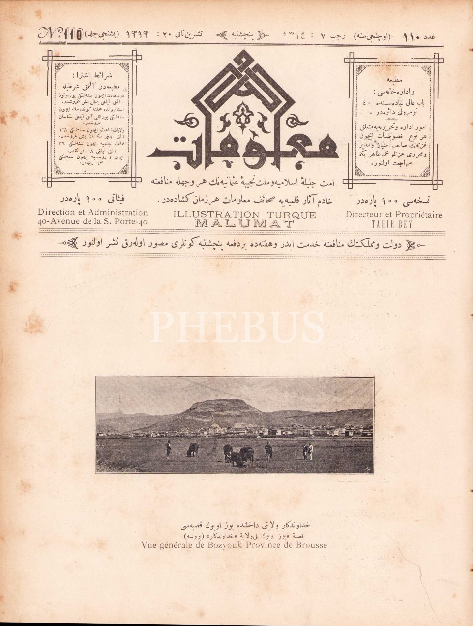 Osmanlıca Malumat Mecmuası, 20 Teşrin-i Sani 1313, kapak Hüdavendigar Vilayeti Dahilinde Bozüyük Kasabası, ciltten çıkma, 26 sayfa, 23x30 cm