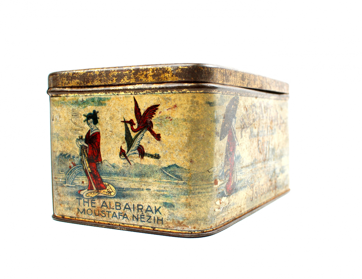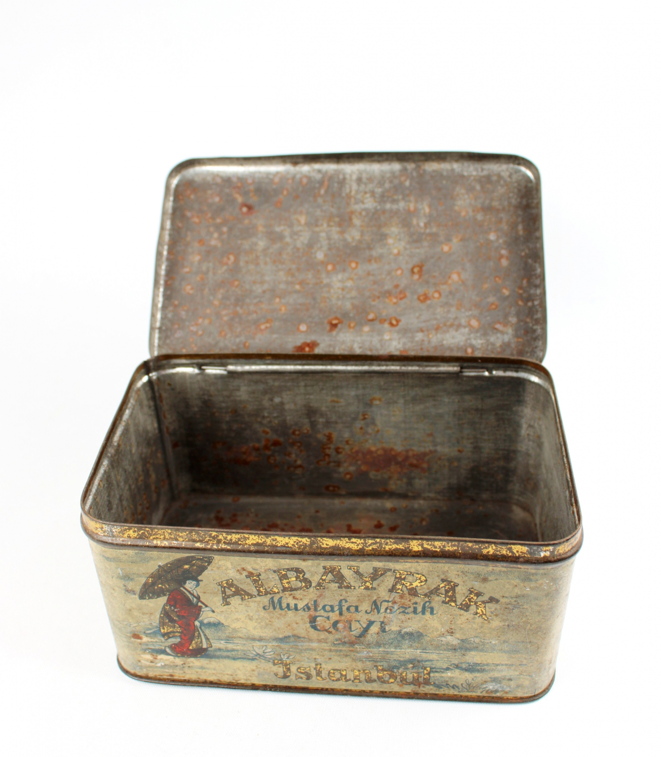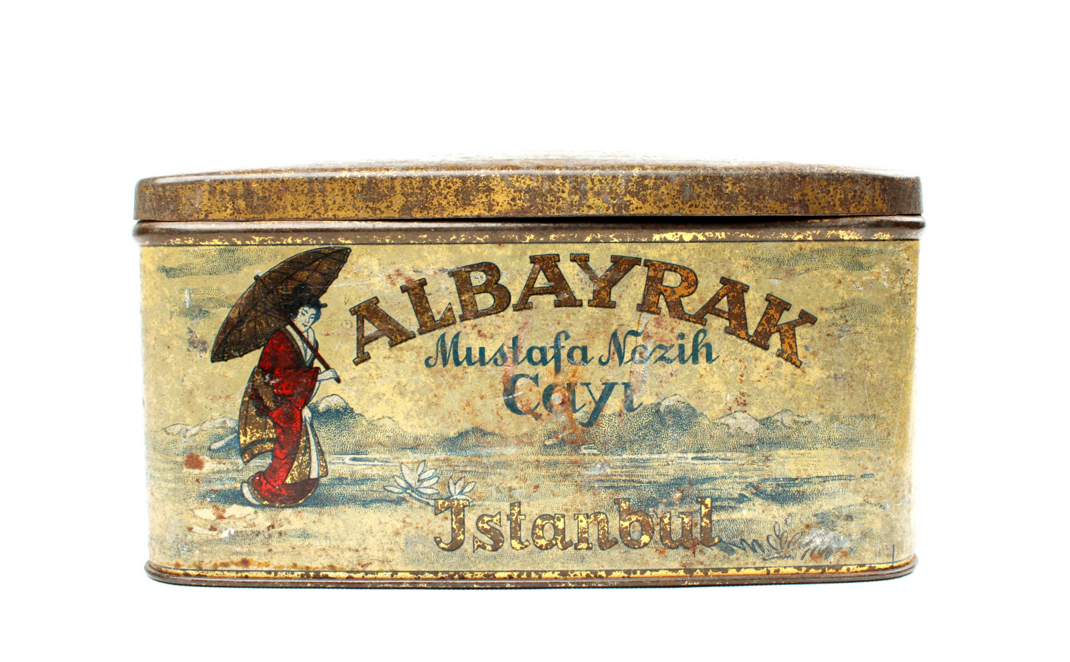 Albayrak Mustafa Nezih Çayı İstanbul yazılı teneke çay kutusu, 15x9,5x7,5cm