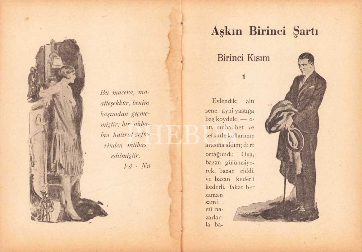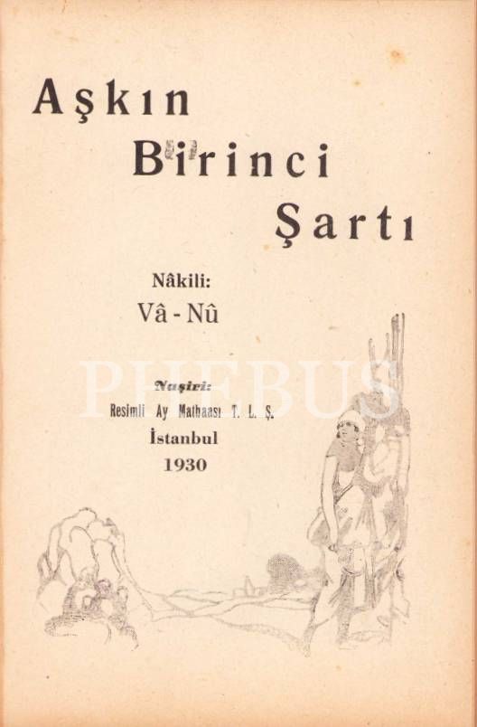 Aşkın Birinci Şartı - Roman -, Va. Nu., Resimli Ay Matbaası, İstanbul 1930, 174 sayfa, 12x16 cm