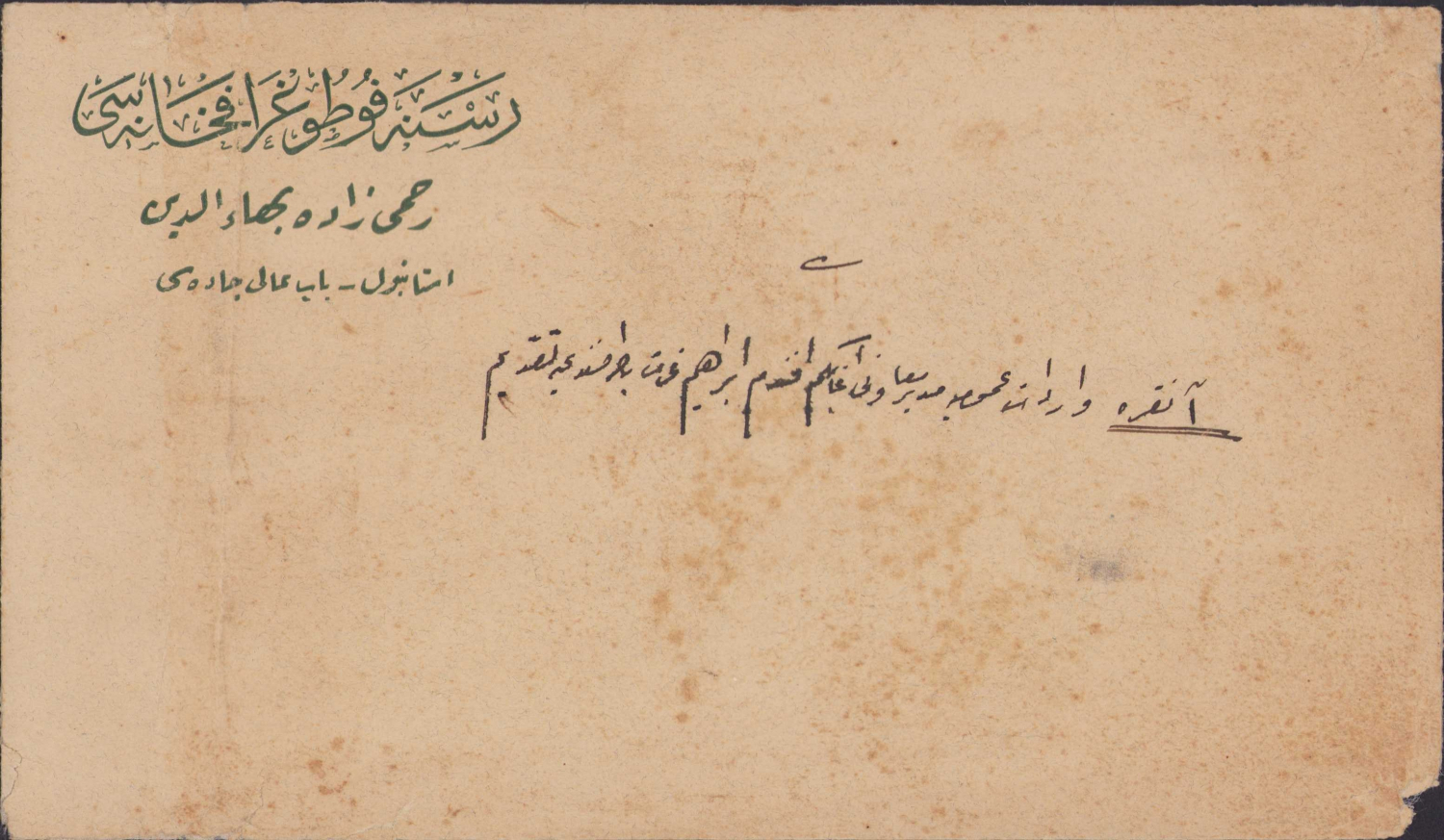 Osmanlıca Resna Fotoğrafhanesi antetli zarf, nadir, Ankara adresli, 26x15cm