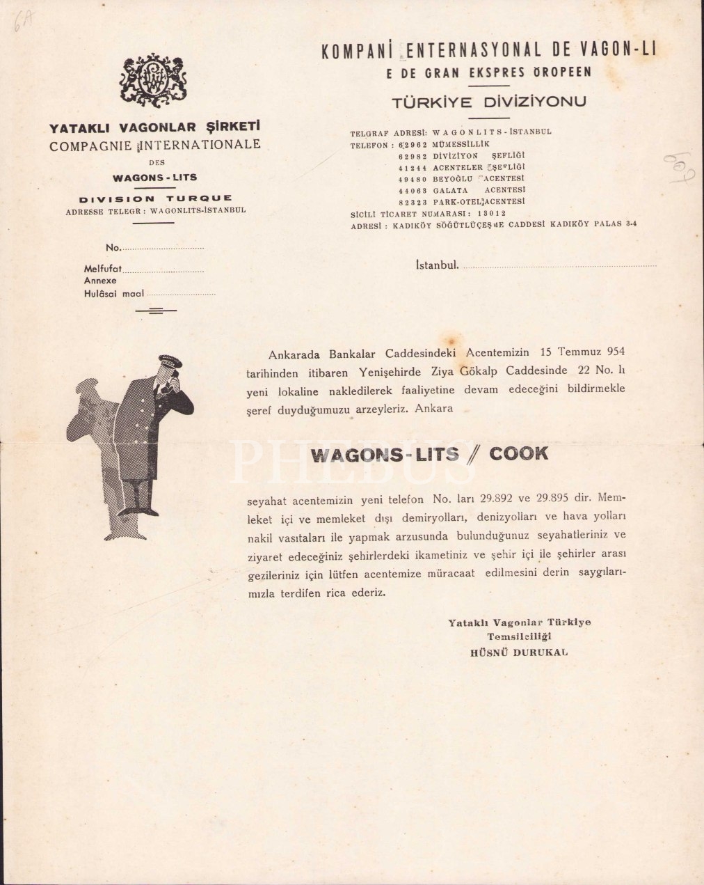 Yataklı Vagonlar Şirketi antetli ilan, 23x28 cm