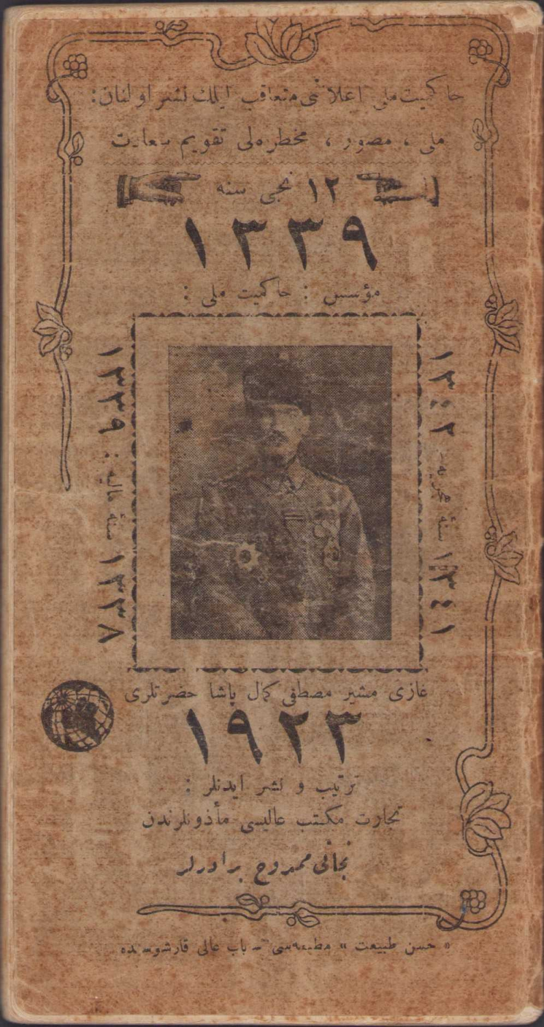 1923 tarihli cep ajandası, Atatürk kapaklı, bol miktarda Kurtuluş savaşı propaganda görselli ve halife Abdülmecit efendi görselli, 8x16cm