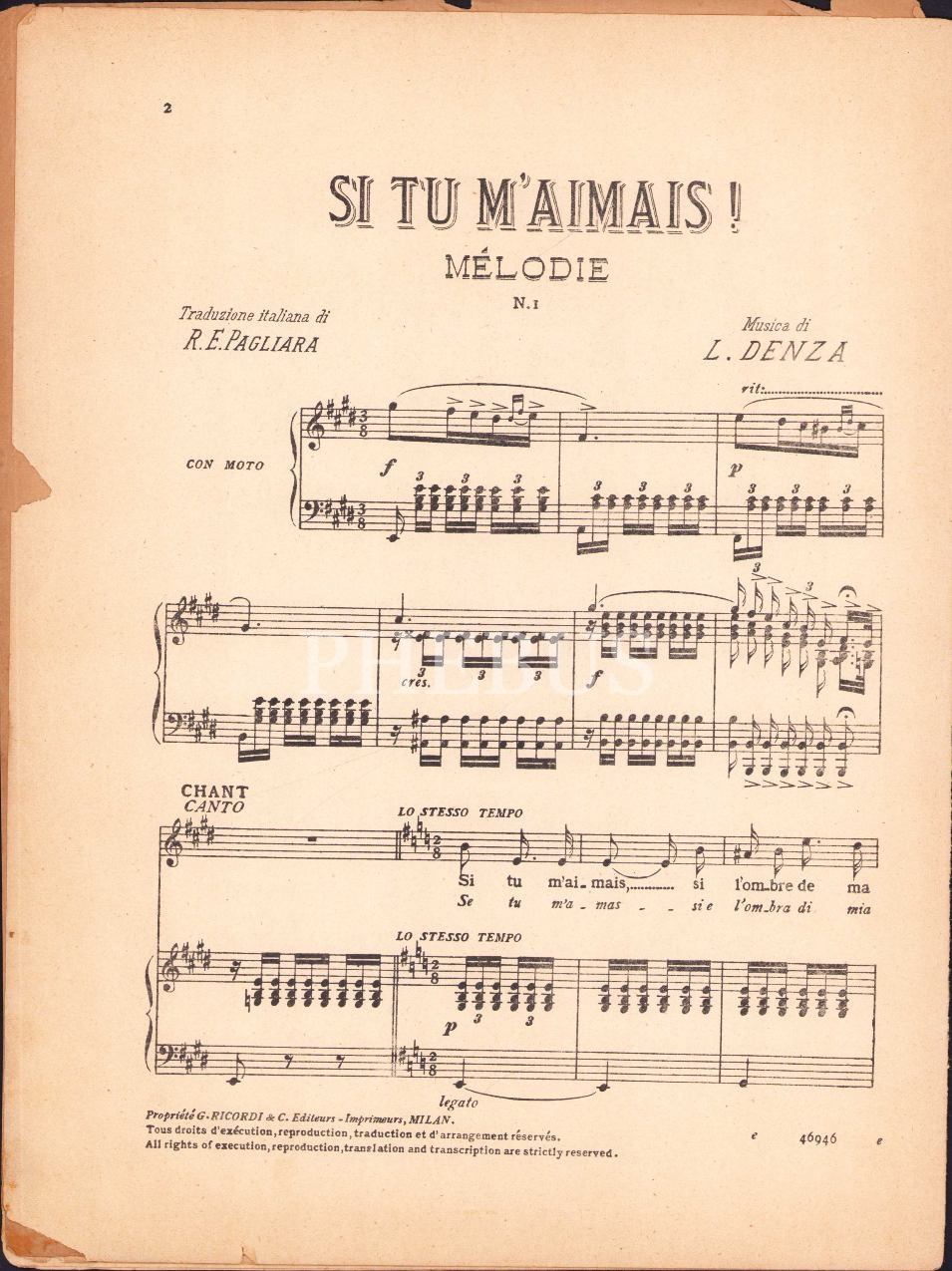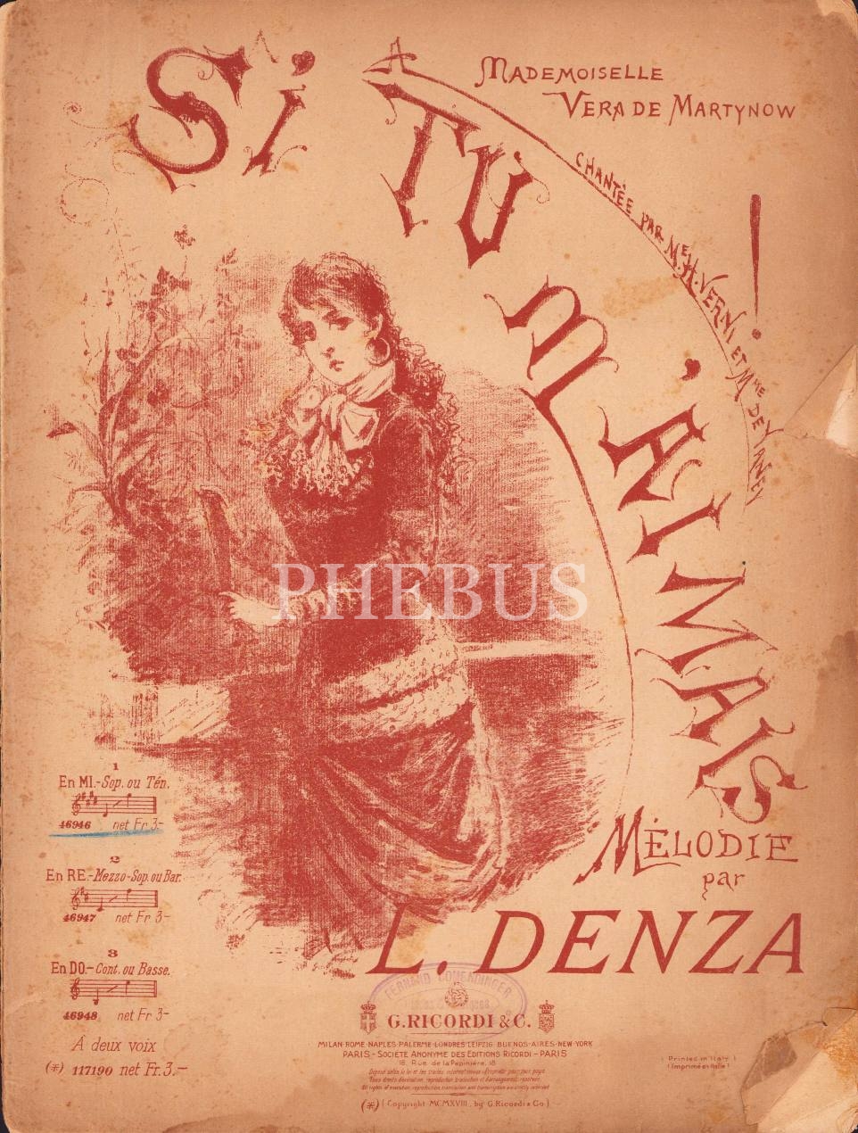 Si Tu M'aimais, Melodie, L. Denza, haliyle, 10 sayfa, 25x34 cm
