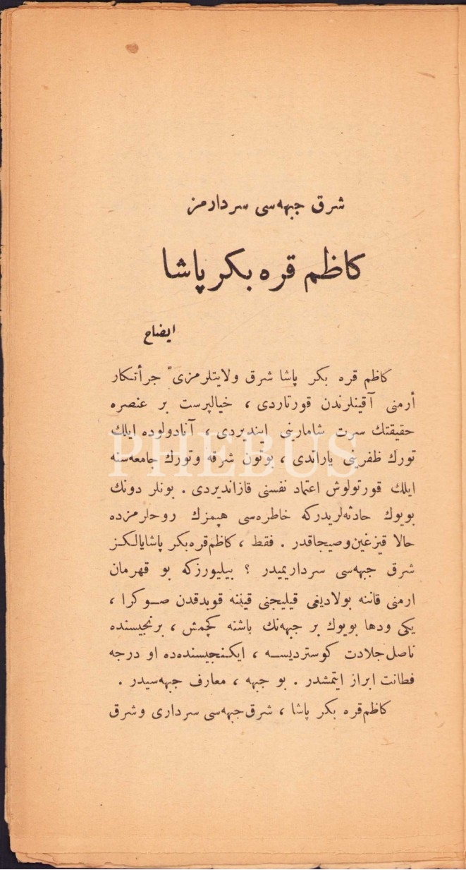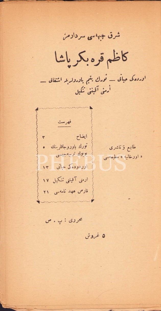 Osmanlıca "Şark Cebhesi Serdarımız Kazım Karabekir Paşa", Muharriri: P. S (Peyami Safa), Orhaniye Matbaası, 23 sayfa.