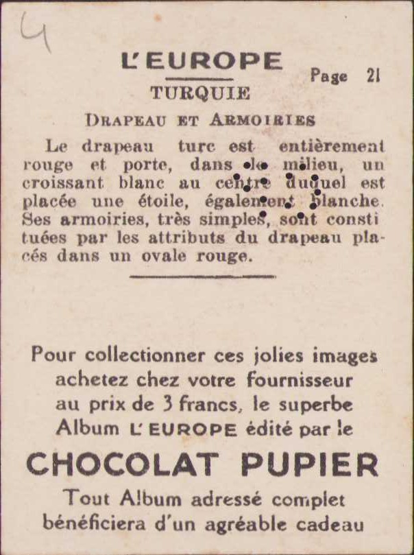 Türk bayrağı detaylı çikolata kartı, Fransa baskısı, 5x7cm