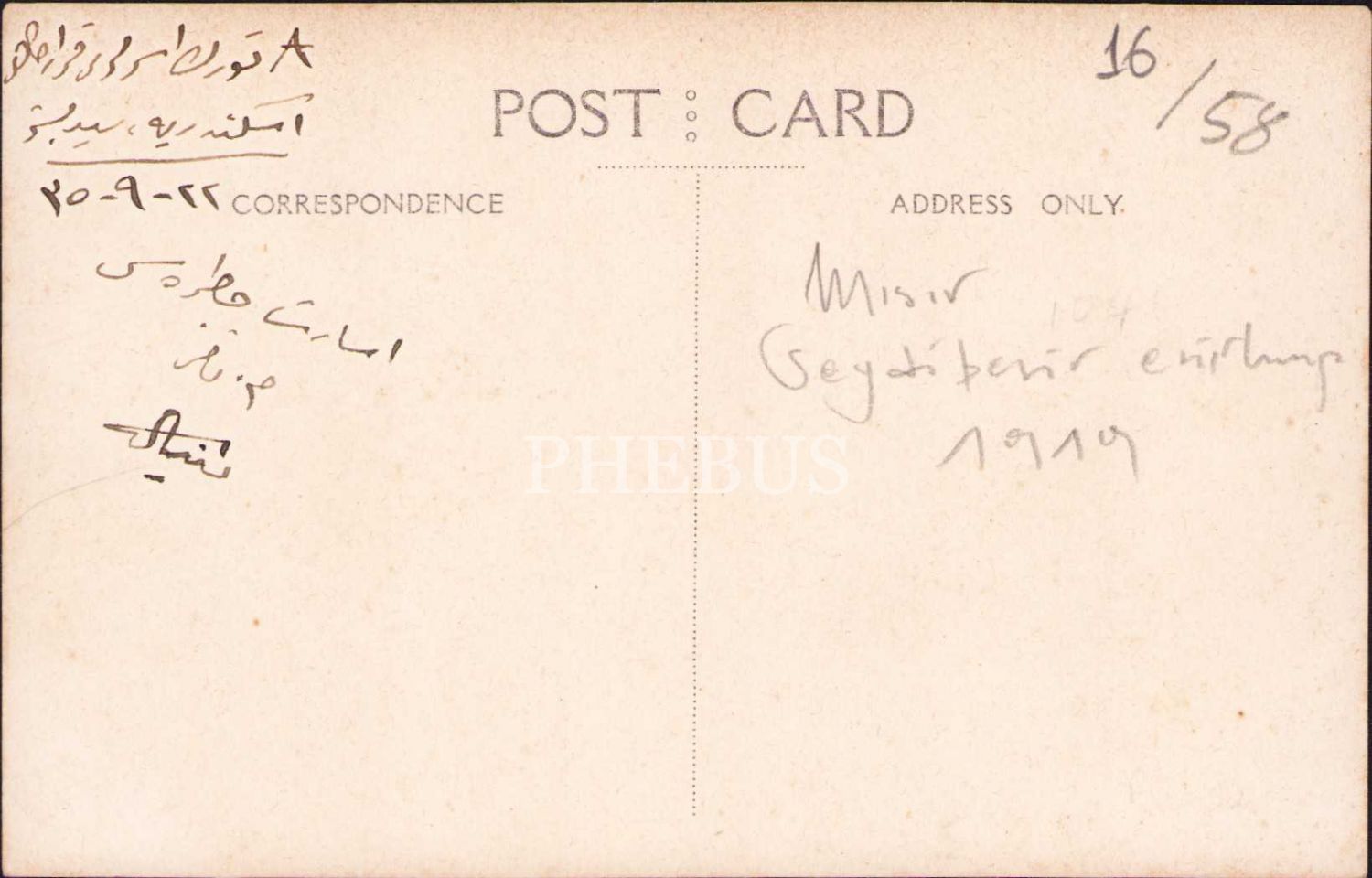 Mısır Seydibeşir Esir Kampı, 1335 tarihli, arkası Osmanlıca, 14x9 cm