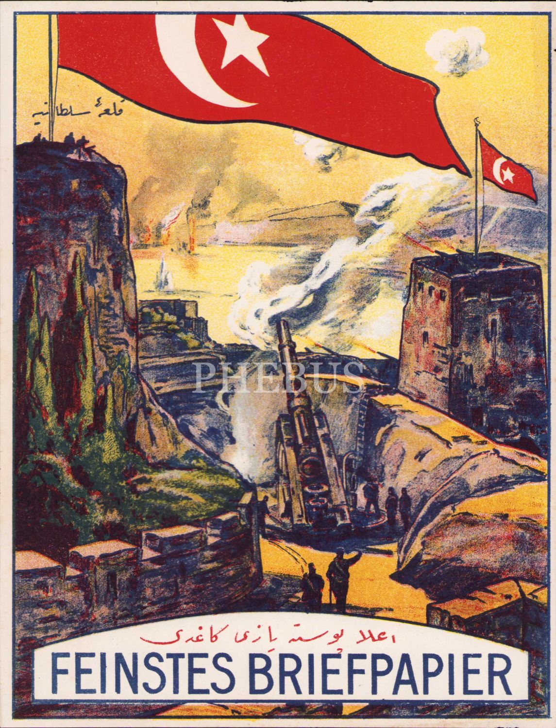 Çanakkale [Kala-i Sultaniye] Savaşı görselli Ala Posta Yazı Kağıdı etiketi, "Feintes Briefpapier", 18x24 cm