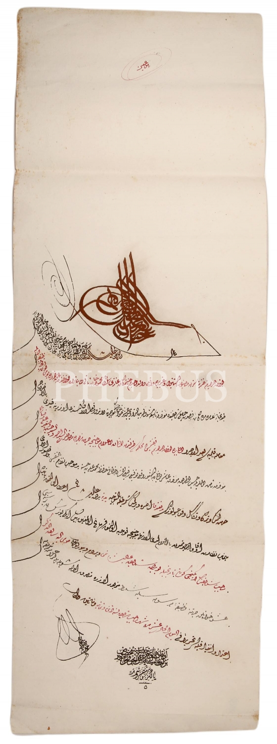 Sultan Abdülaziz tuğralı vazife tayin beratı, 1271 tarihli, 27x80 cm, haliyle