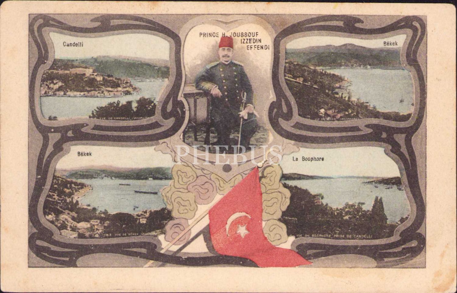 Osmanlı Dönemi Çok Nadir Kartpostal, Şehzade Yusuf İzzeddin Efendi ve İstanbul Manzaraları, Kandilli, Bebek ve İstanbul Boğazı, 14x9 cm