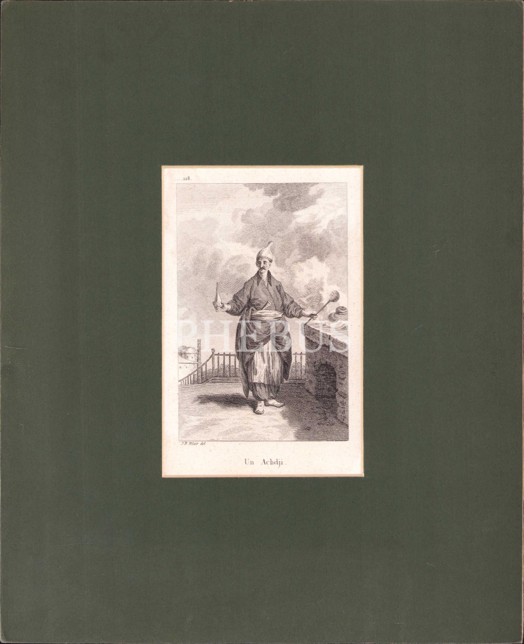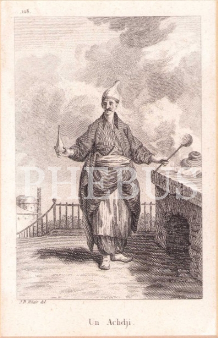 Osmanlı dönemi aşçı gravürü, "Un Achdji", J. B. Hilair, 11x16 cm