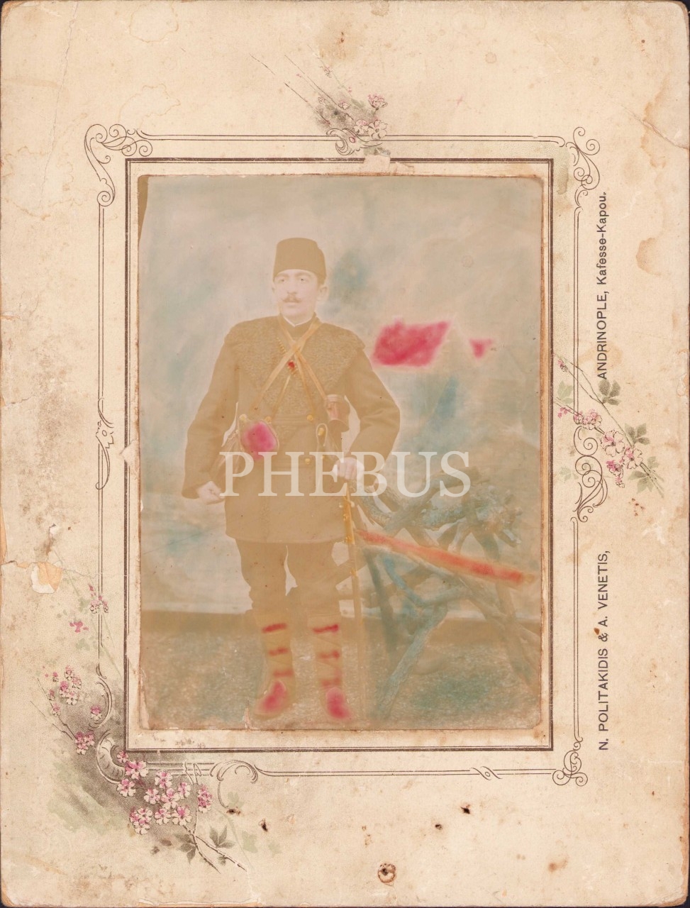 Nadir Üniformalı asker fotoğrafı, N. Politakidis&A. Venetis, Andrinople, Kafesse-Kapou, 15x17 cm
