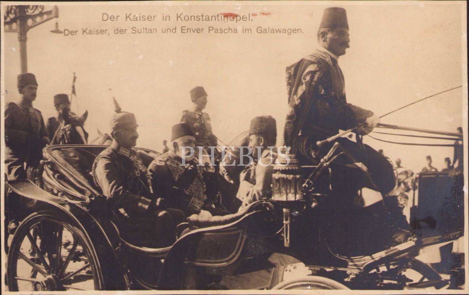 Alman İmparatoru İstanbul'da, Sultan Mehmed Reşad, Kayzer Wilhelm ve Enver Paşa, Almanca, 14x9 cm