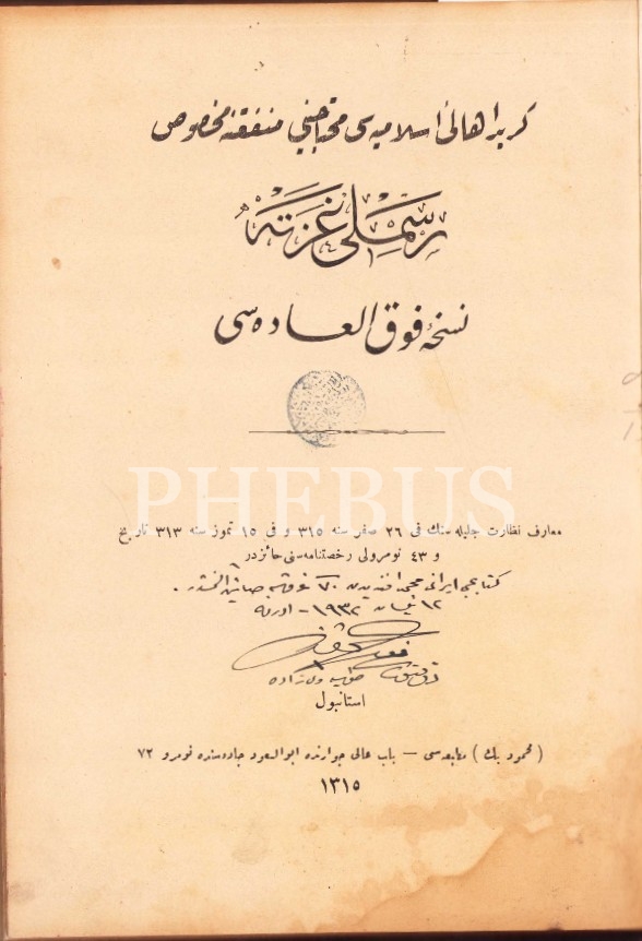 Osmanlıca Girid Ahali-yi İslamiyesi Menfaatine Mahsus Fevkalade Resimli Gazete Nüshası, Kandiye Matbaası, 1315 tarihli, nüshanın arka kısmında Zekai Efendi'nin muhtelif eserlerinin matbu notaları mevcuttur, 164 sayfa, tuğralı cildinde, 20x27 cm
