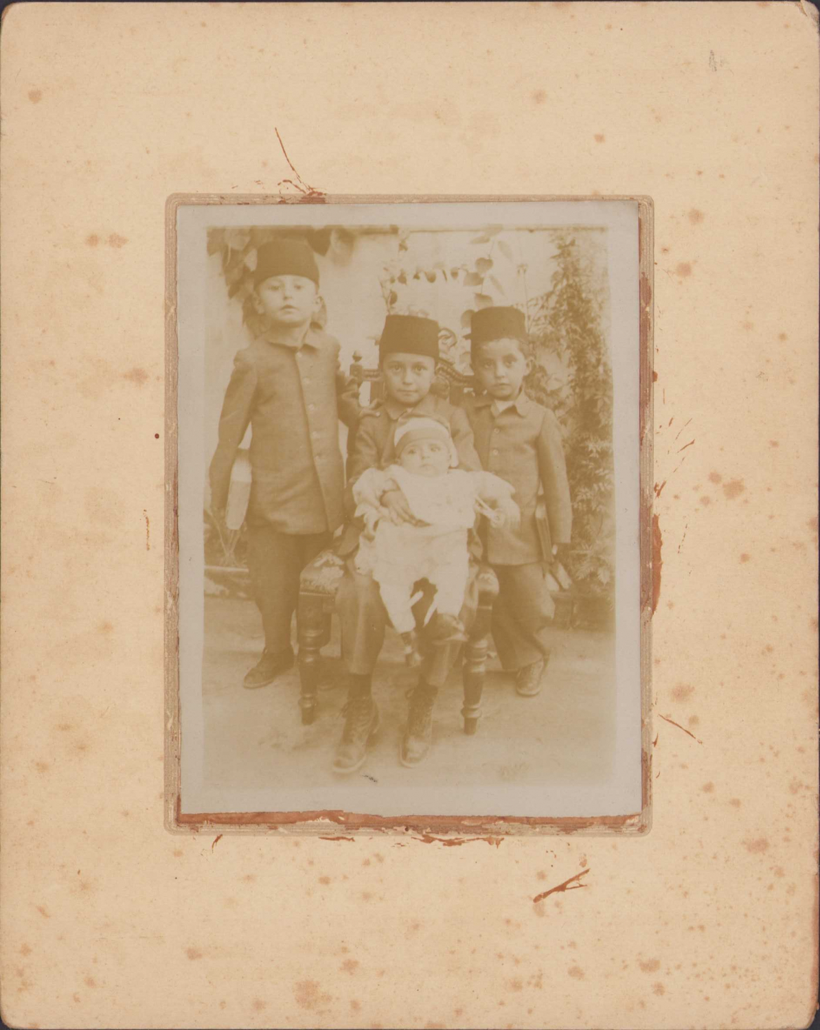 Osmanlı dönemi dört kardeş hatıra fotoğrafı, açık alanda çekilmiş, kabin fotoğrafı, 16x20cm