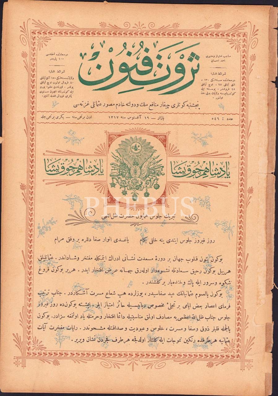 Osmanlıca Servet-i Fünun Mecmuası'nın Padişahın Cülusu Sebebiyle Yayınlanan Özel Sayısı, 11 Ağustos 1317 tarihli, on birinci sene, 14 sayfa, 22x33 cm
