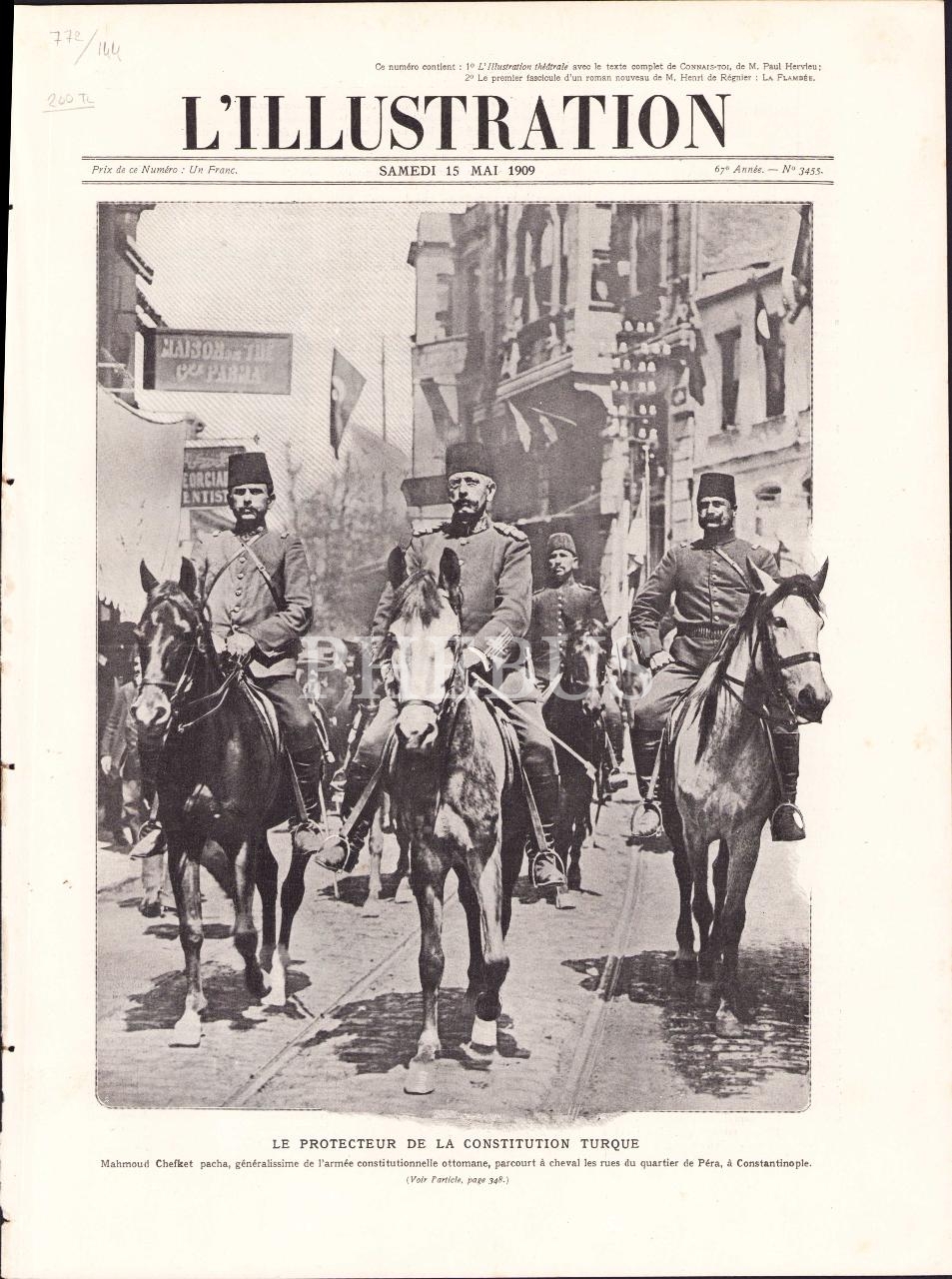 Fransızca L'Illustration Dergisi, Kapak: Osmanlı Ordusu Atlıları İstanbul'da Mahmud Şevket Paşa, 15 Mayıs 1909, 20 sayfa, Fransızca, cildden çıkma, 29x39 cm.
