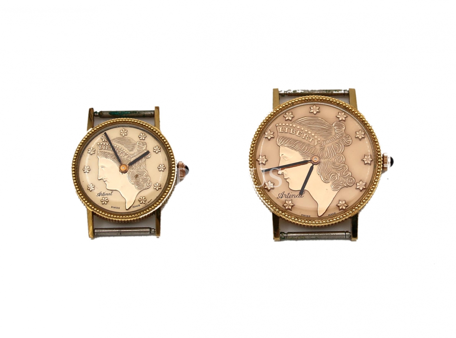 İki adet Artinal Swiss Made saat kadranı, biri 3 cm, diğeri 2 cm