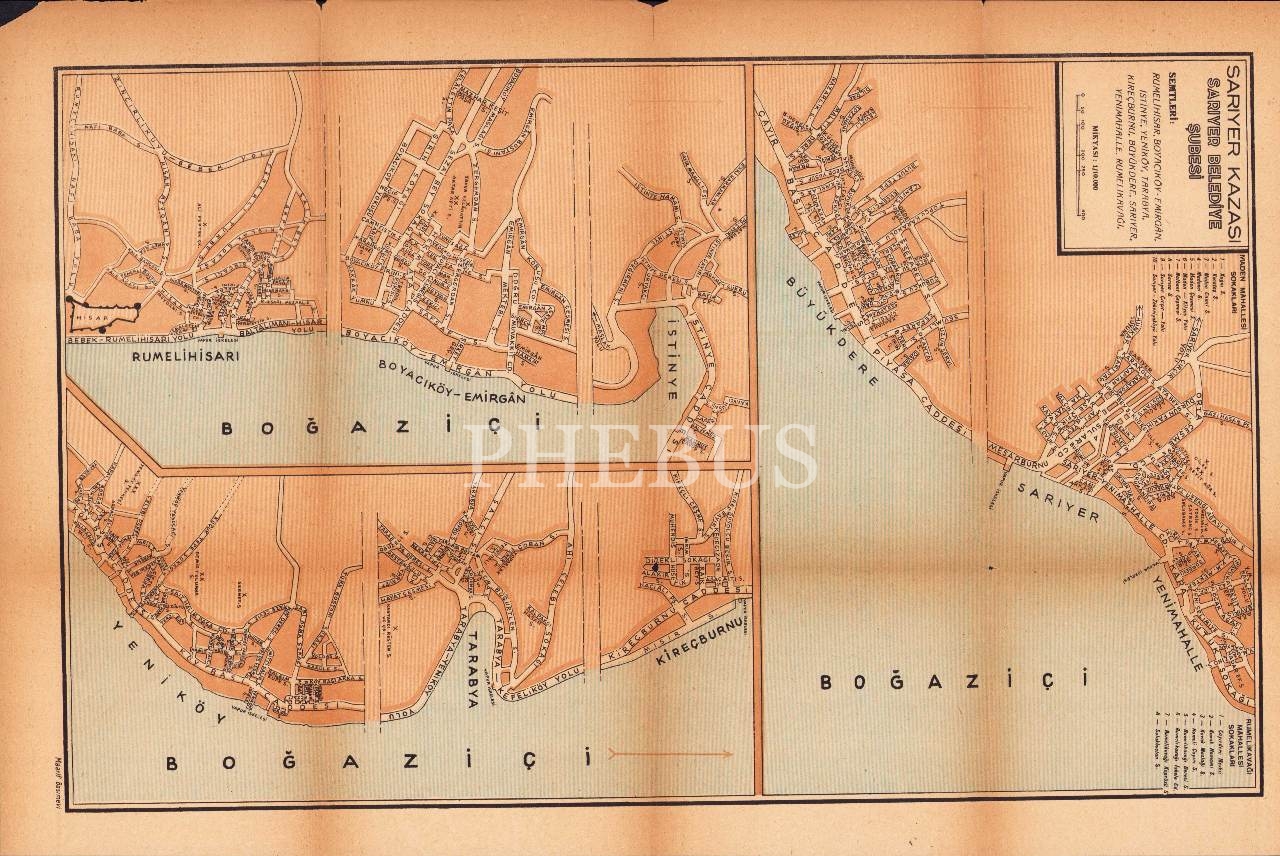 Haritalı İstanbul Şehir Rehberi, 1955 tarihli kitaptan, Sarıyer Kazası harita, Maarif Basımevi, 28x40 cm