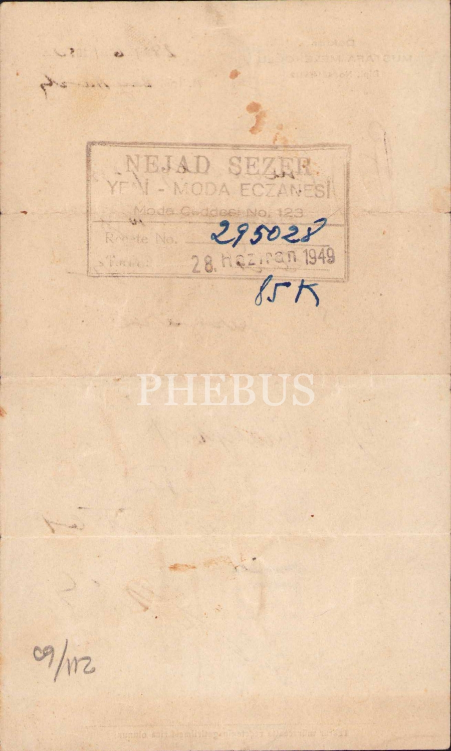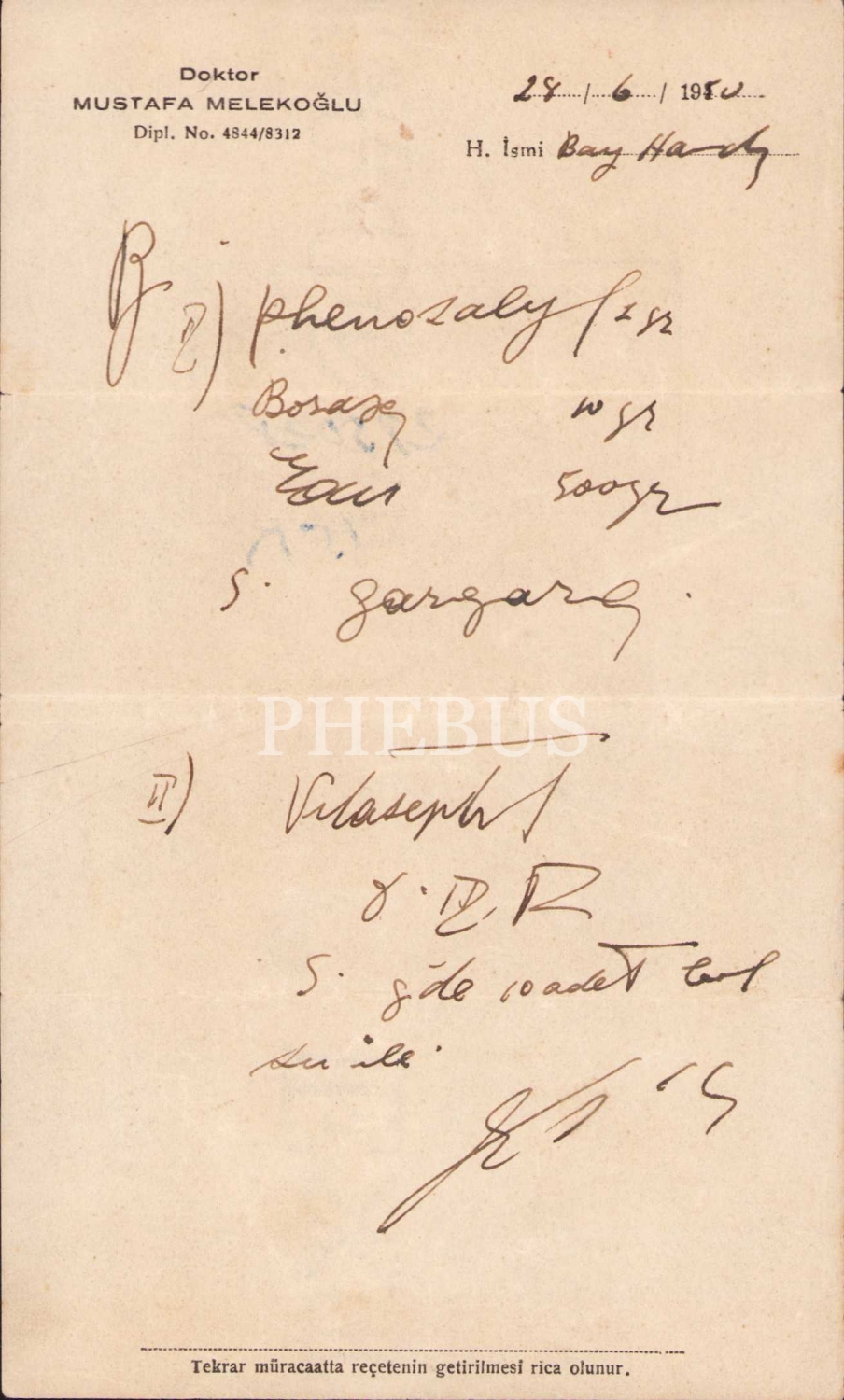 Doktor Mustafa Melekoğlu antetli reçete, 1950, 10x15 cm