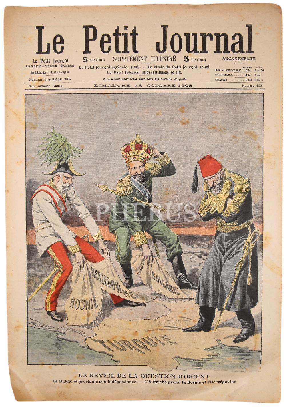Le Petit Journal, 18 Ekim 1908, Osmanlı, Doğu sorunu konulu kapak, II. Abdülhamid, Fransızca, 8 sayfa, 30x43 cm.