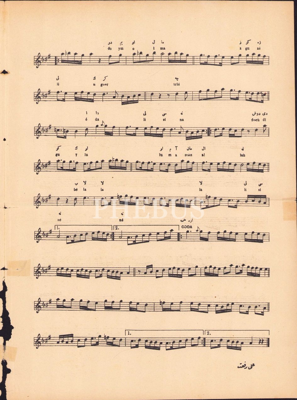 Osmanlıca nota, İlave-i Malumat, Ah Düşeyim Der İken Eyvah Vefalısına, Rıza Efendi, 4 sayfa, 24x30 cm