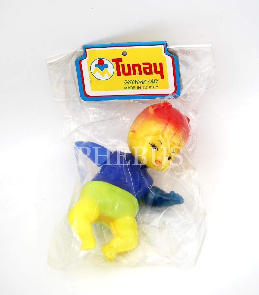 Tunay Oyuncakları marka, kurmalı plastik bebek, orijinal paketinde, kurması çalışmıyor, haliyle, 12x5x2 cm