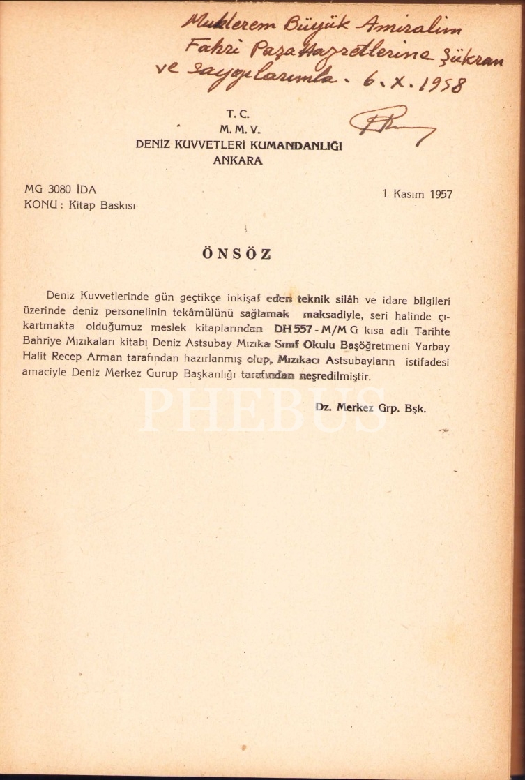 Tarihte Bahriye Mızıkaları, İstanbul 1958, 279 sayfa, 16x23 cm