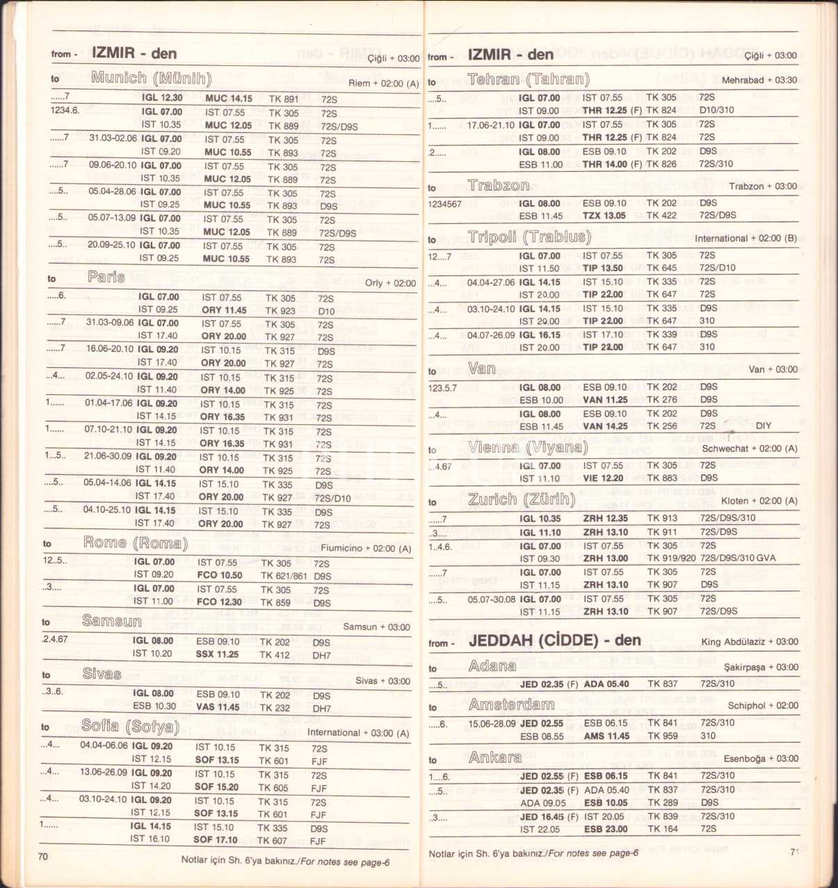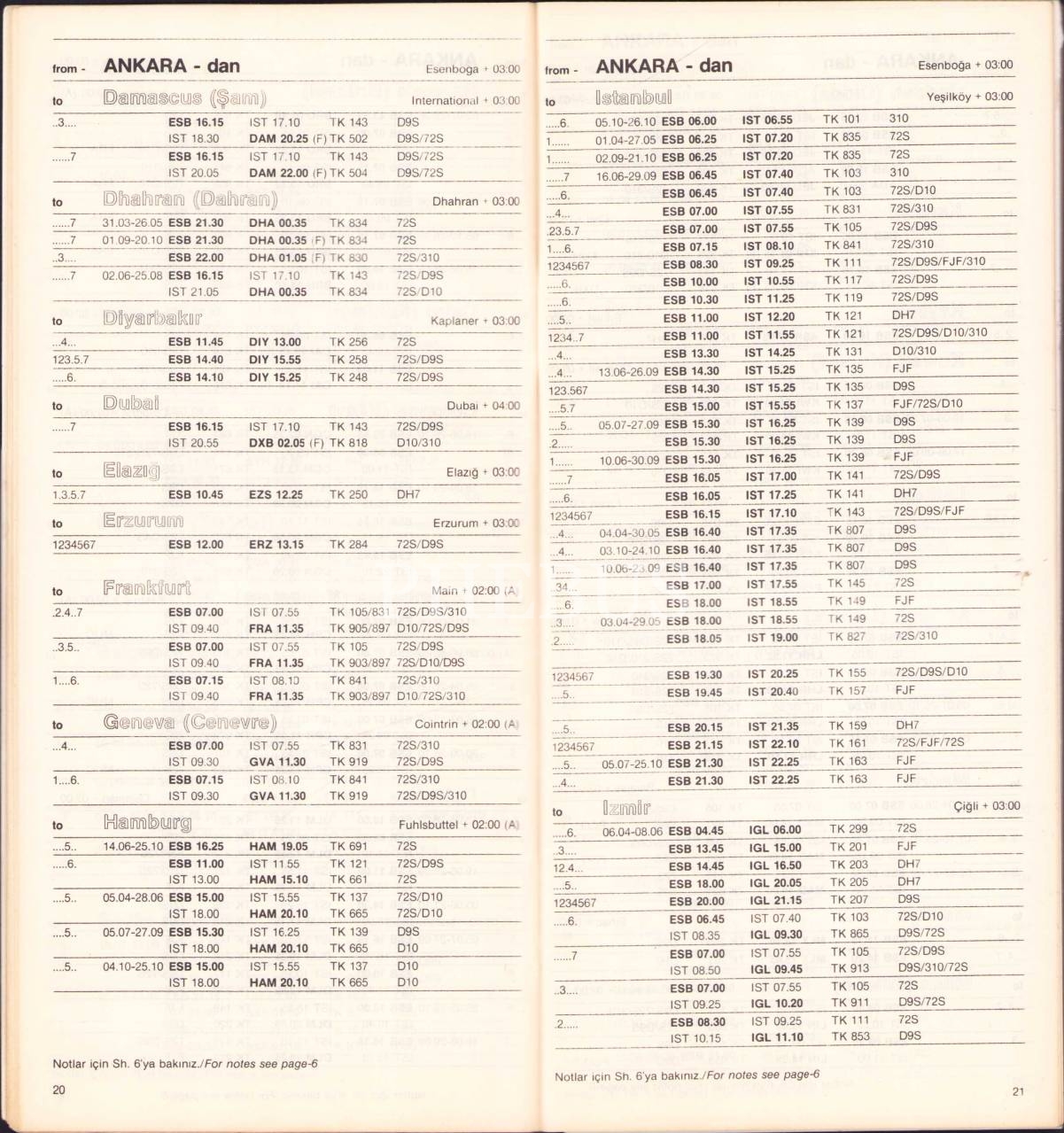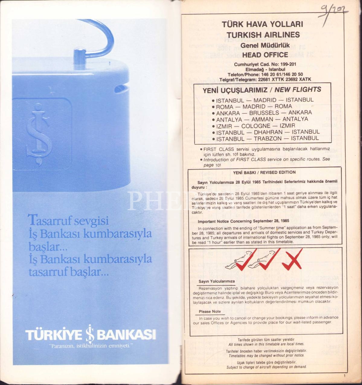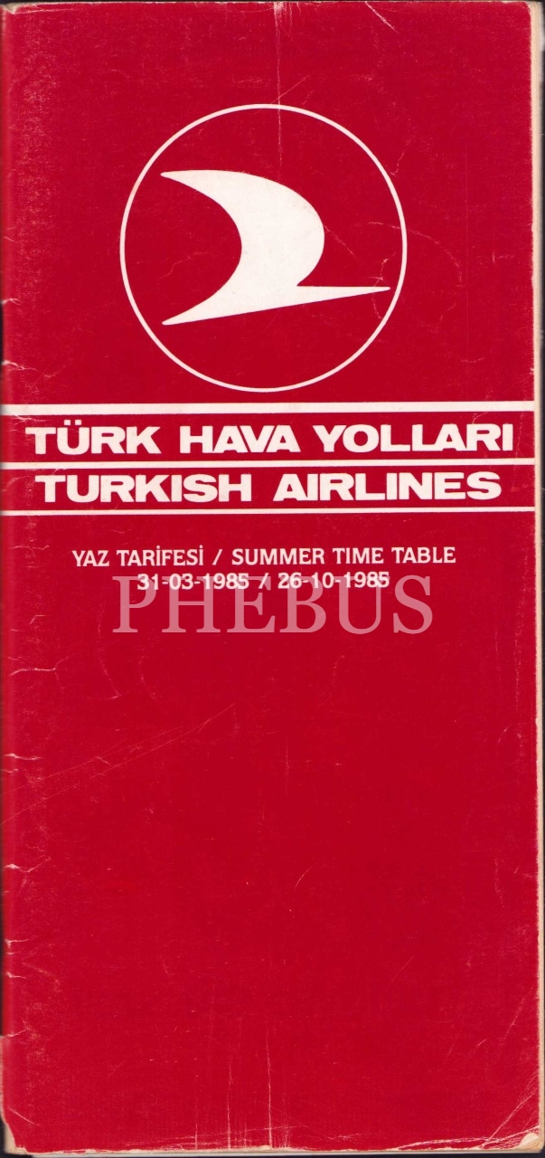 Türk Hava Yolları 1985 Yaz Tarifesi, arka kapak bir kenar yırtık, 123 sayfa, 11x21 cm