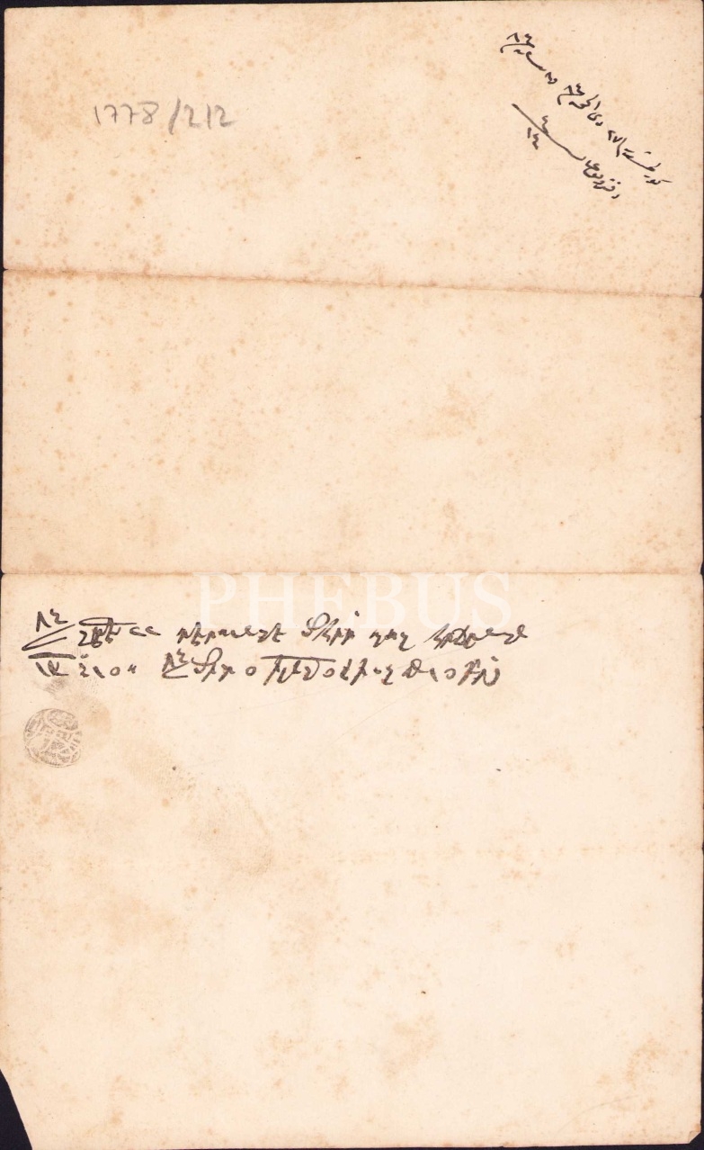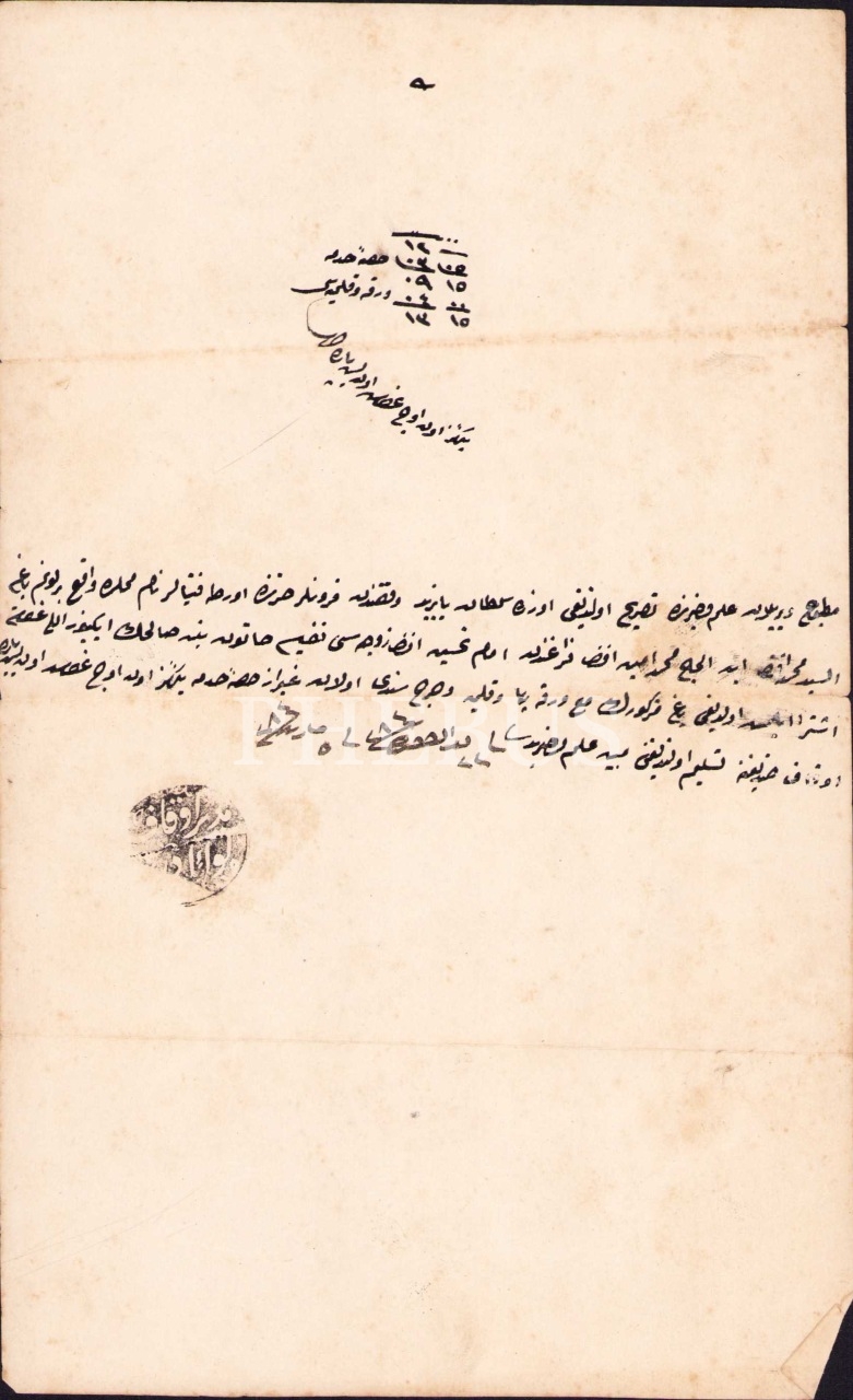 Sultan Beyazıt Han taraflarından Kayalar mahallesinde bir dönemim bağın Mehmet Emin Efendi tarafından İmam Tahsin beyin zevcesine geçmesi hakkında Osmanlıca evrak, 1284, 13x22 cm