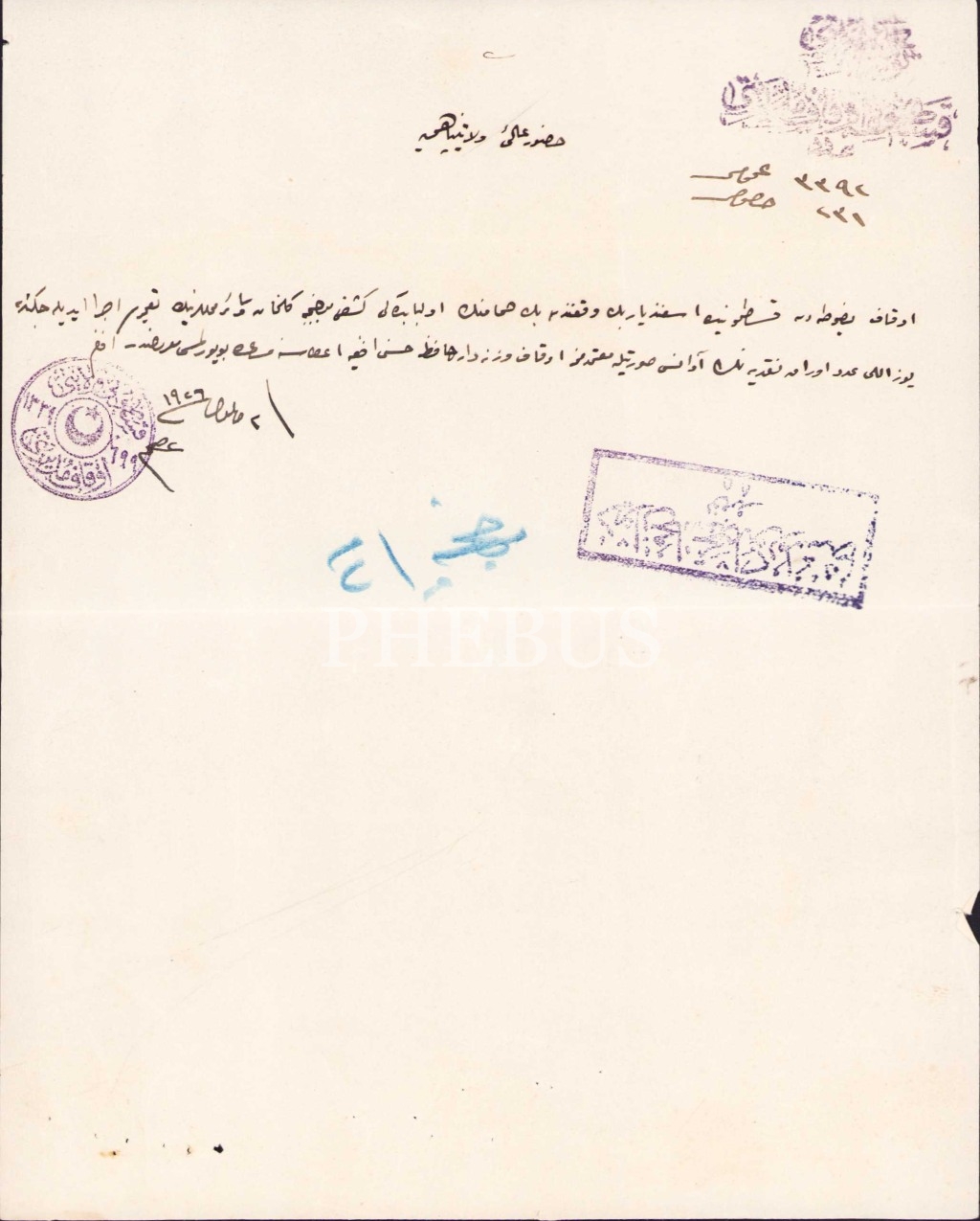 Osmanlıca Kastamonu Evkaf Müdüriyeti Mühürlü İsfendiyar Bey Külliyatı vakfı konulu, 1926 tarihli evrak, 18x22 cm
