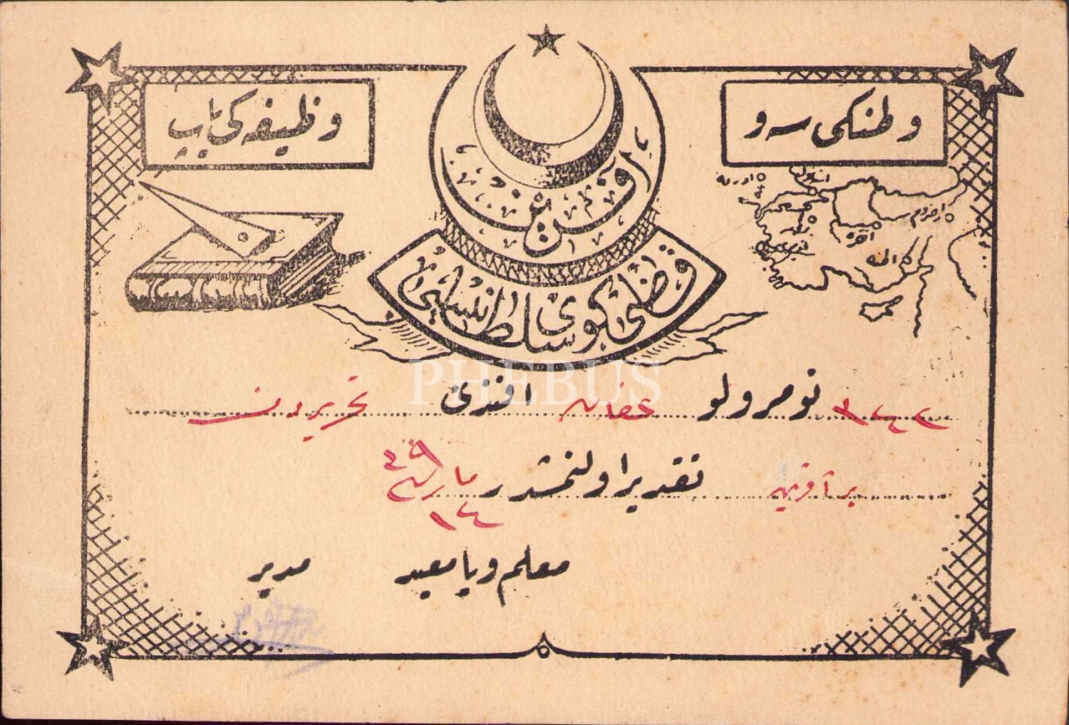 Osmanlıca aferin, Kadıköy Sultanisi, 1339 tarihli, 13x10 cm
