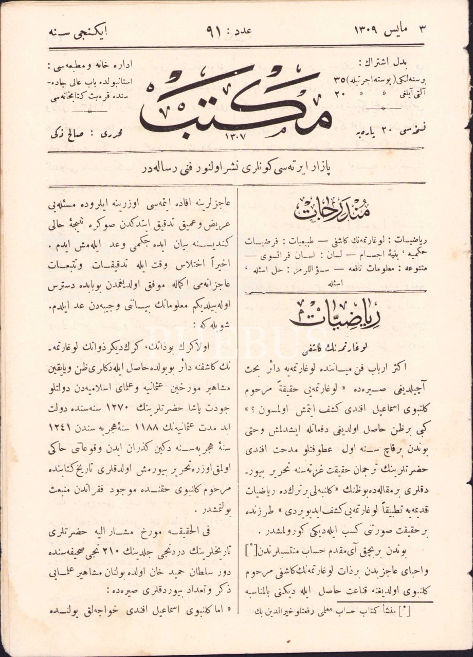 Osmanlıca Mektep Risalesi, 3 Mayıs 1309, 10 sayfa, dergiden çıkma, 16x24 cm