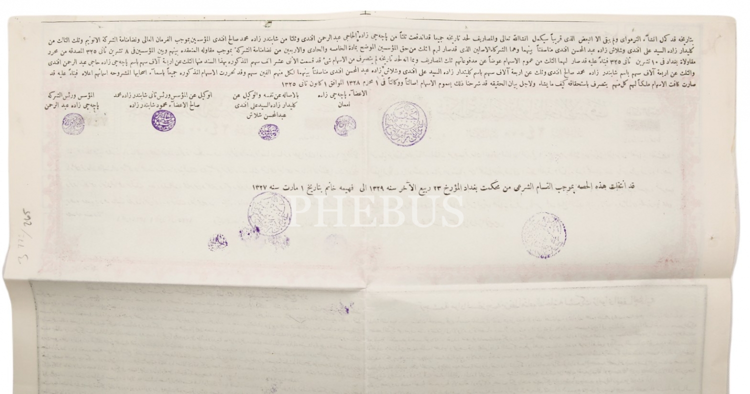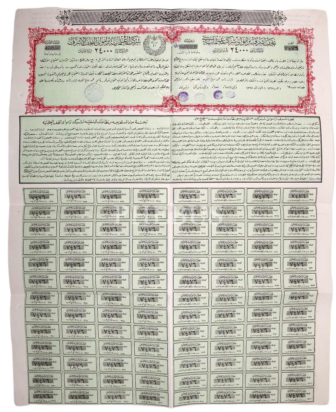 Osmanlıca - Arapça Necef-i Eşref Tramvay Şirket-i Osmaniyesi hisse senedi, 45x60 cm