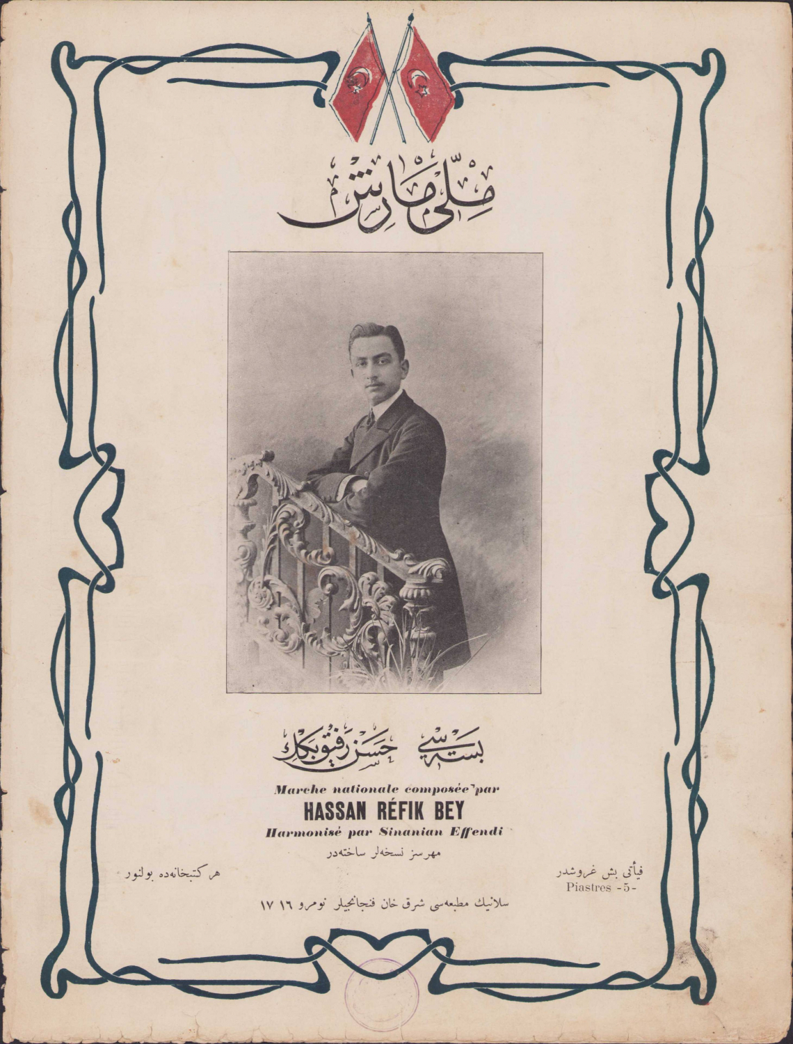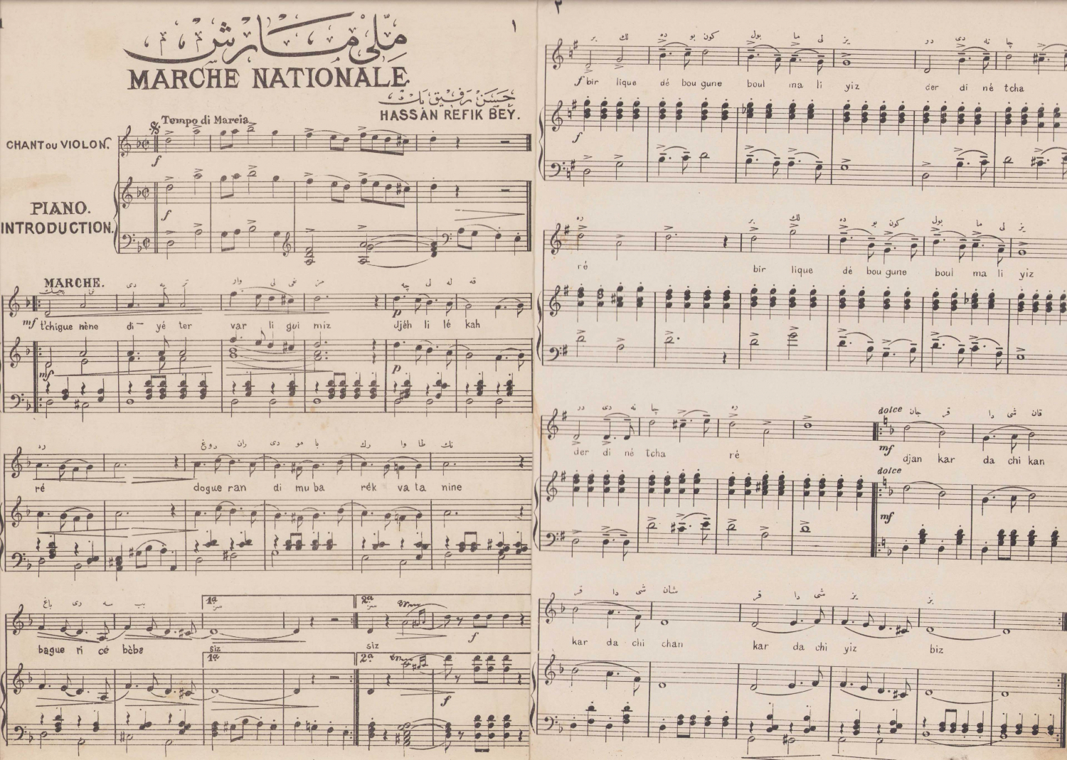 Milli Marş, Bestekar Hasan Refik Bey, Osmanlıca - Fransızca, kapağı türk bayrağı detaylı, 6 sayfa, 25x33cm