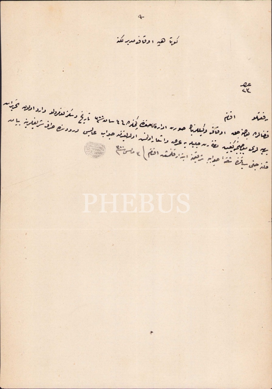 Kütahya Evkaf Müdürlüğüne, kazalarda bulunacak evkaf vekilliğinin nasıl çalışacaklarına dair 2 Mayıs 1330 tarihli, Es Seyyid Hüseyin Hüsnü mühürlü, Osmanlıca evrak, 18x28 cm