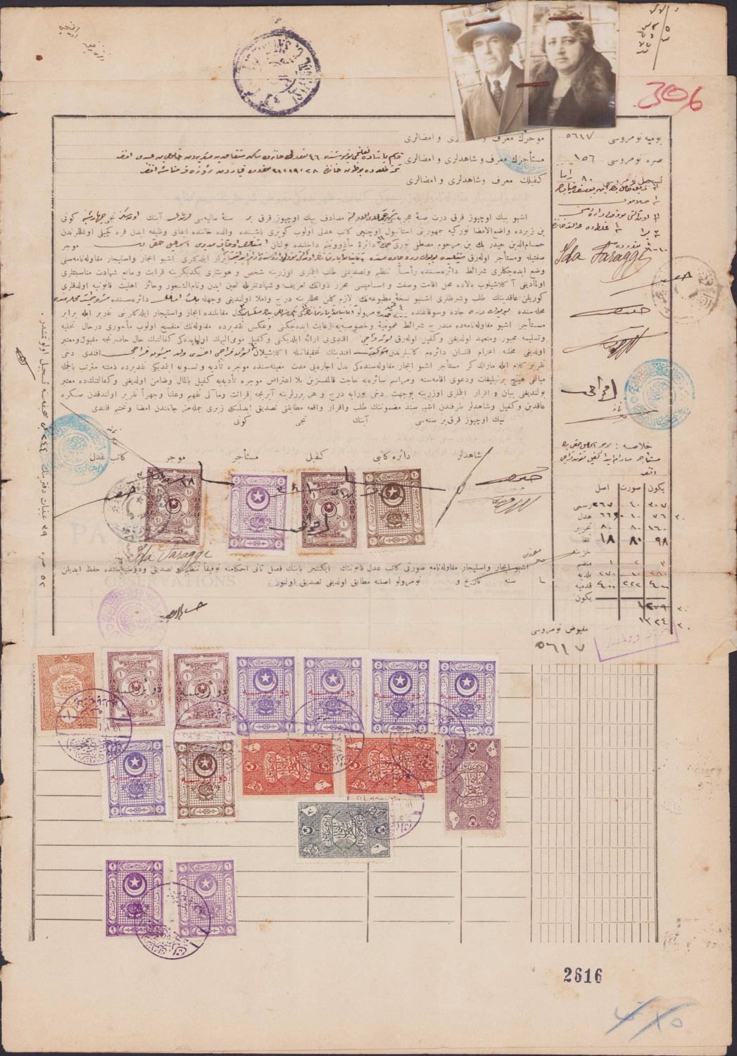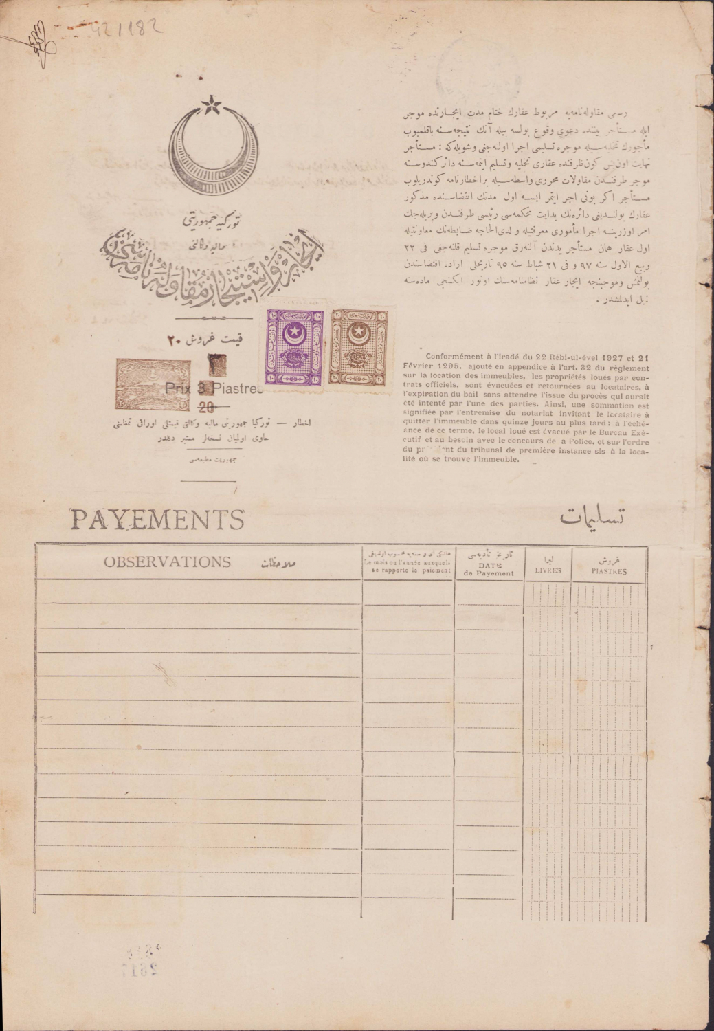 Osmanlı kira sözleşmesi, İstanbul, 1341 tarihli, Osmanlıca - Fransızca, pullu, damgalı, imzalı, 2 yaprak, 29x41cm
