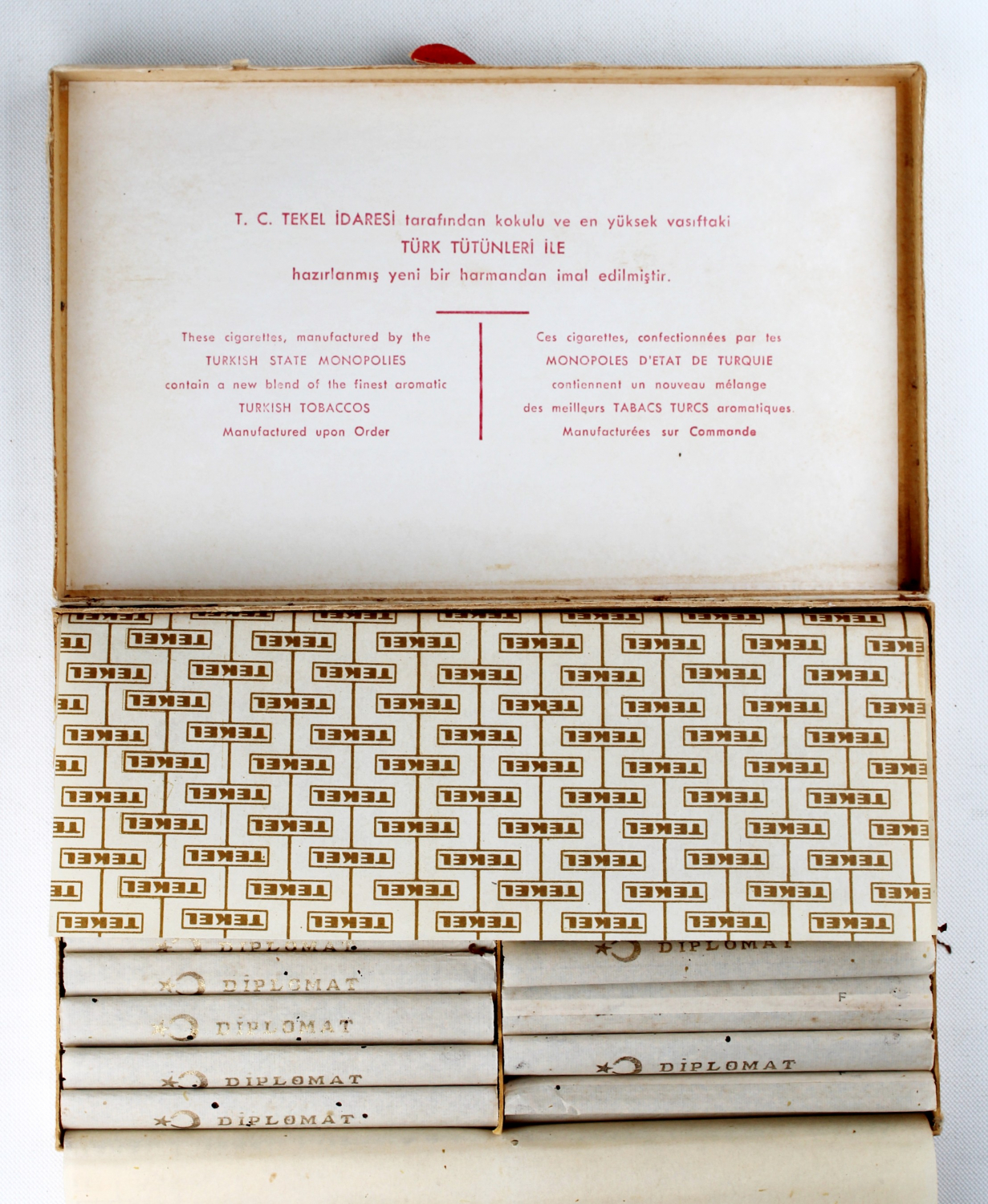 Diplomat marka içi tam dolu sigara paketi, TC Tekel İdaresi üretim, ederi 775 kuruş, 17x10cm