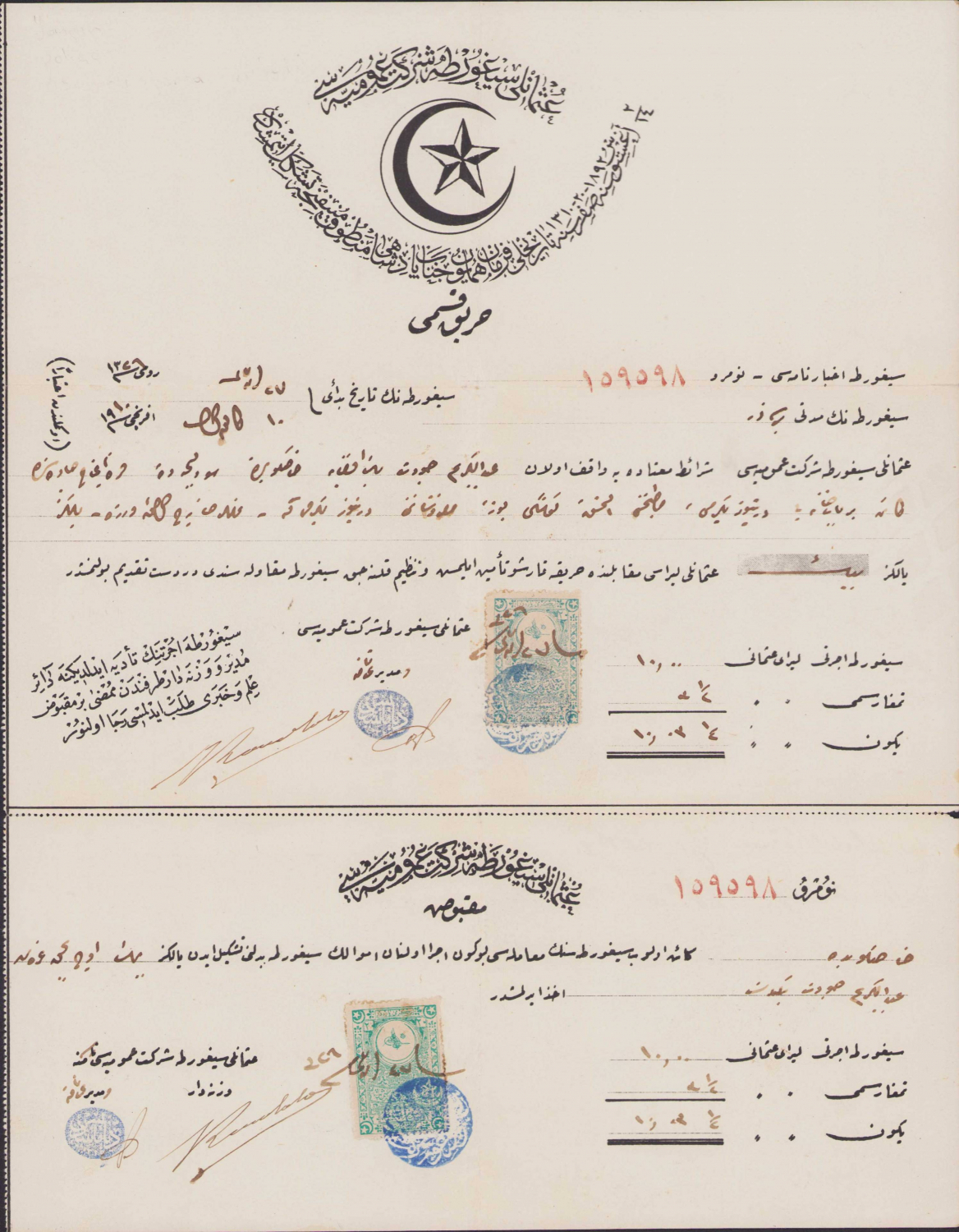 Osmanlı Sigorta Şirketi yangın poliçesi, 1336 tarihli, pullu damgalı, 26x34cm