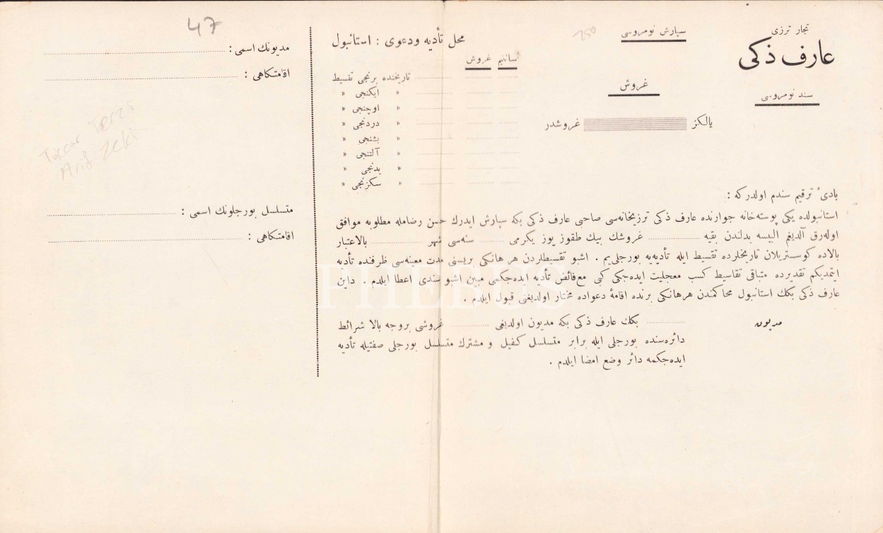Osmanlıca Tüccar Terzi Arif Zeki makbuz, 30x18 cm