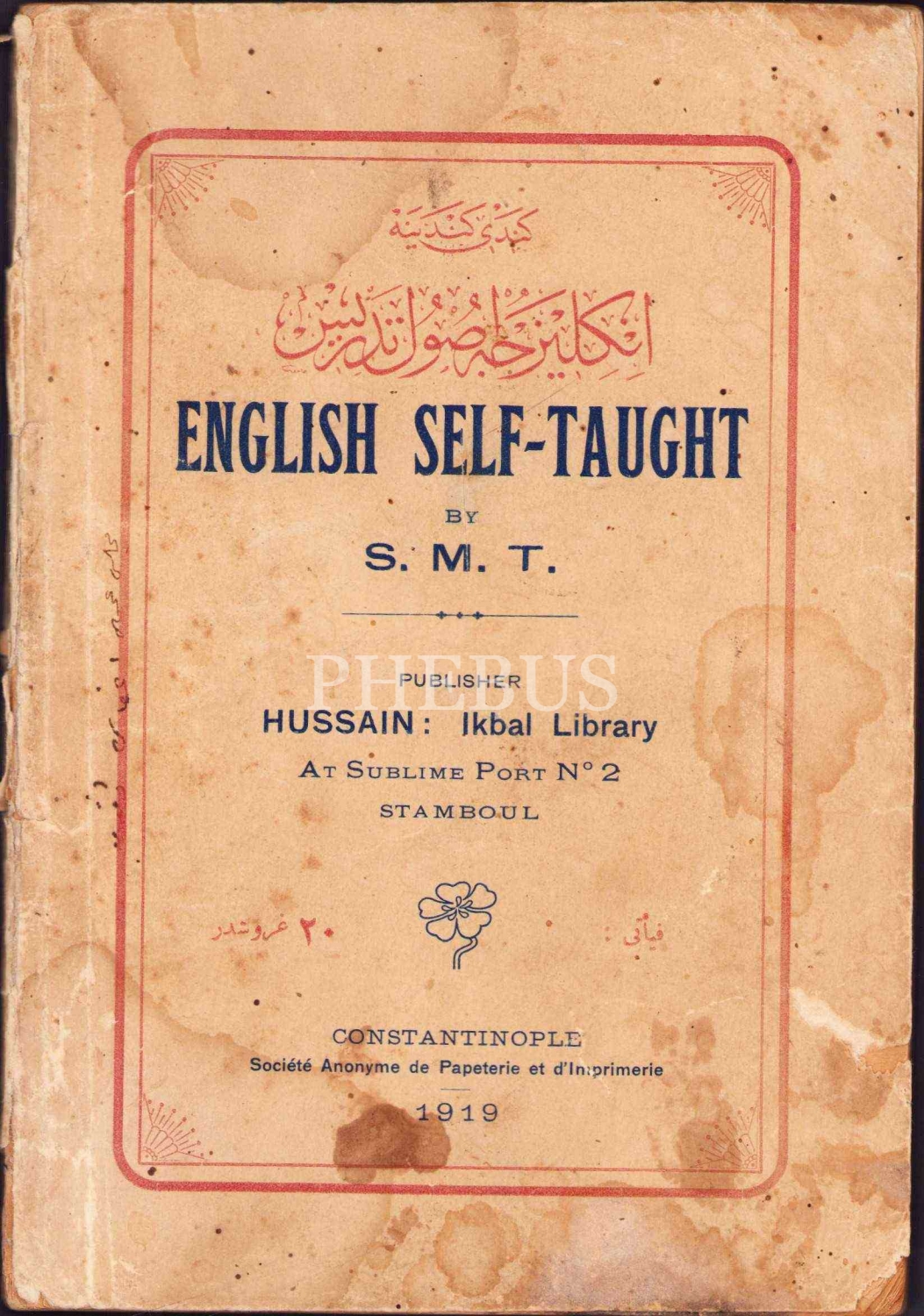 Kendi Kendine İngilizce Usul Tedris, S. M. T. , Constantinople 1919, Osmanlıca - İngilizce, haliyle, 104 sayfa, 13x19 cm
