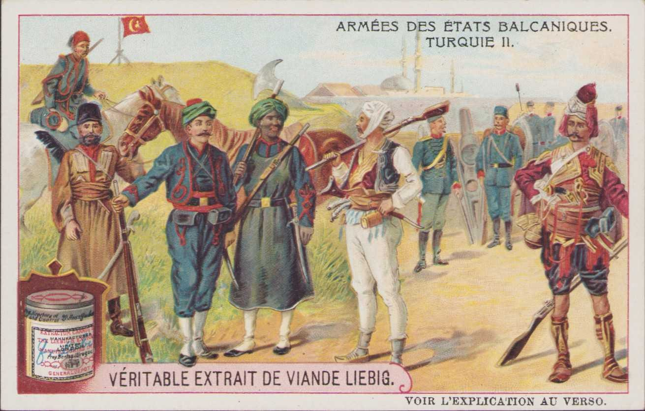 Osmanlı dönemi kart, Balkanlar'daki Türk Askerleri temalı, Türk Bayrağı detaylı, 11x7cm