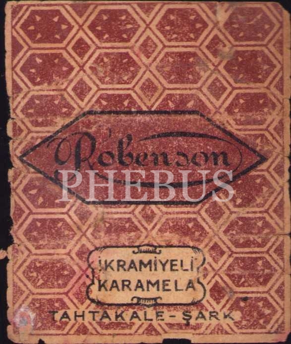 Çikolata kartı: Robenson - İkramiyeli Karamela, Tahtakale - Şark, 5x6 cm