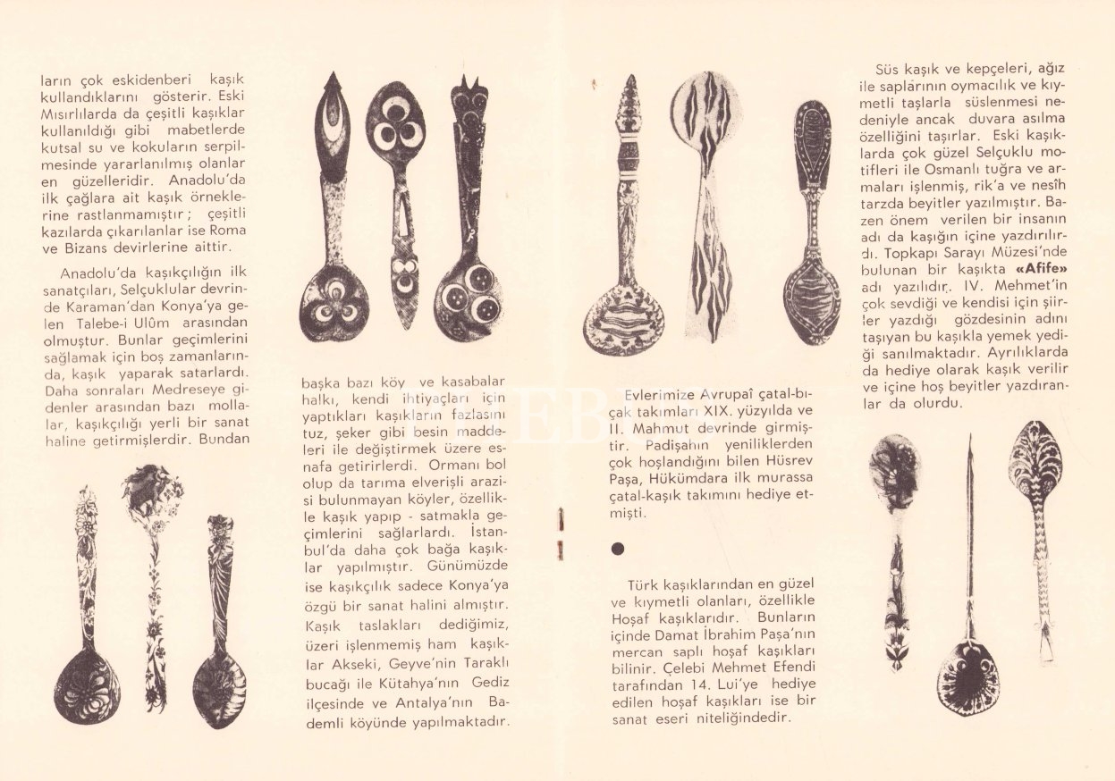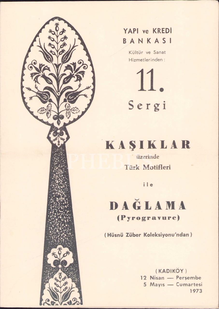 Yapı ve Kredi Bankası Kültür ve Sanat Hizmetlerinden: 11. Sergi - Kaşıklar üzerinde Türk Motifleri ile Dağlama (Hüsnü Züber Koleksiyonu'ndan), Kadıköy - 12 Nisan - 5 Mayıs 1973, 8 sayfa, 15x21 cm