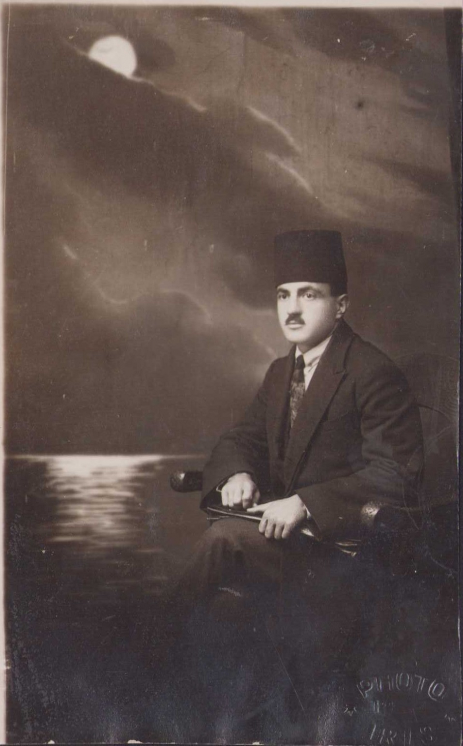 Fesli beyefendi portresi, stüdyo çekim, Foto İris, Pera adresli, 8x13cm